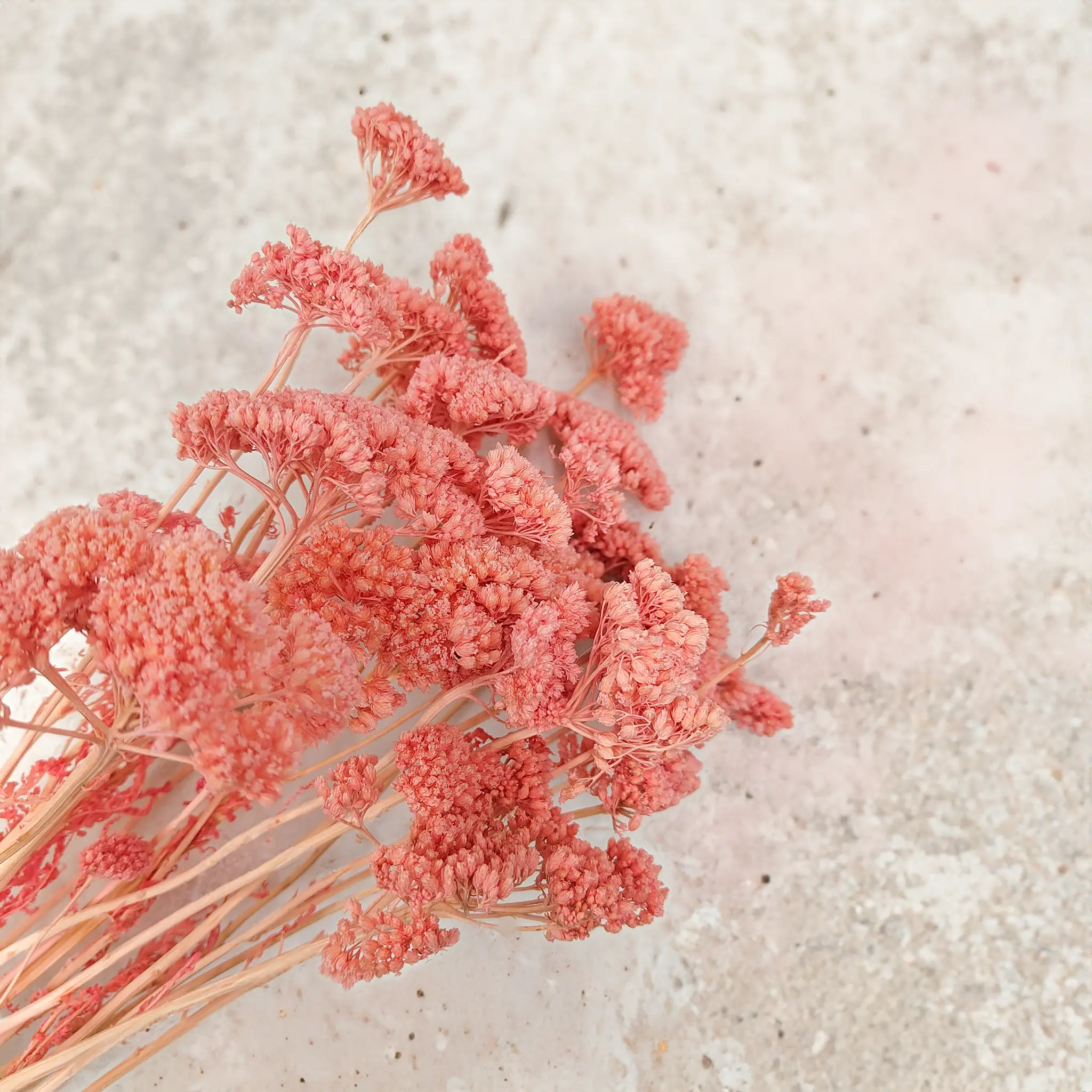 Experience the gentle charm of pink dried yarrow (Achillea). Its compact flowers bring softness and a romantic touch to any floral arrangement or home decor project.