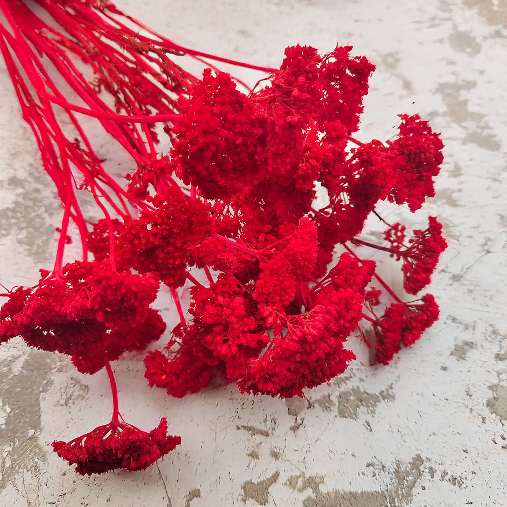 Red symbolizes love, strength, and passion. Combined with the traditional yarrow symbolism of health and protection, it's perfect for striking and meaningful decorations.