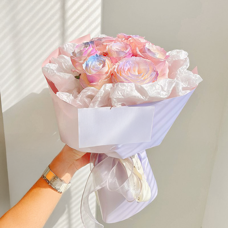 This waterproof florist film features a beautiful gradient from light blue to deep navy, adding elegance and depth to your floral arrangements. Made from BOPP material, it offers high durability and moisture resistance while remaining flexible and easy to shape.