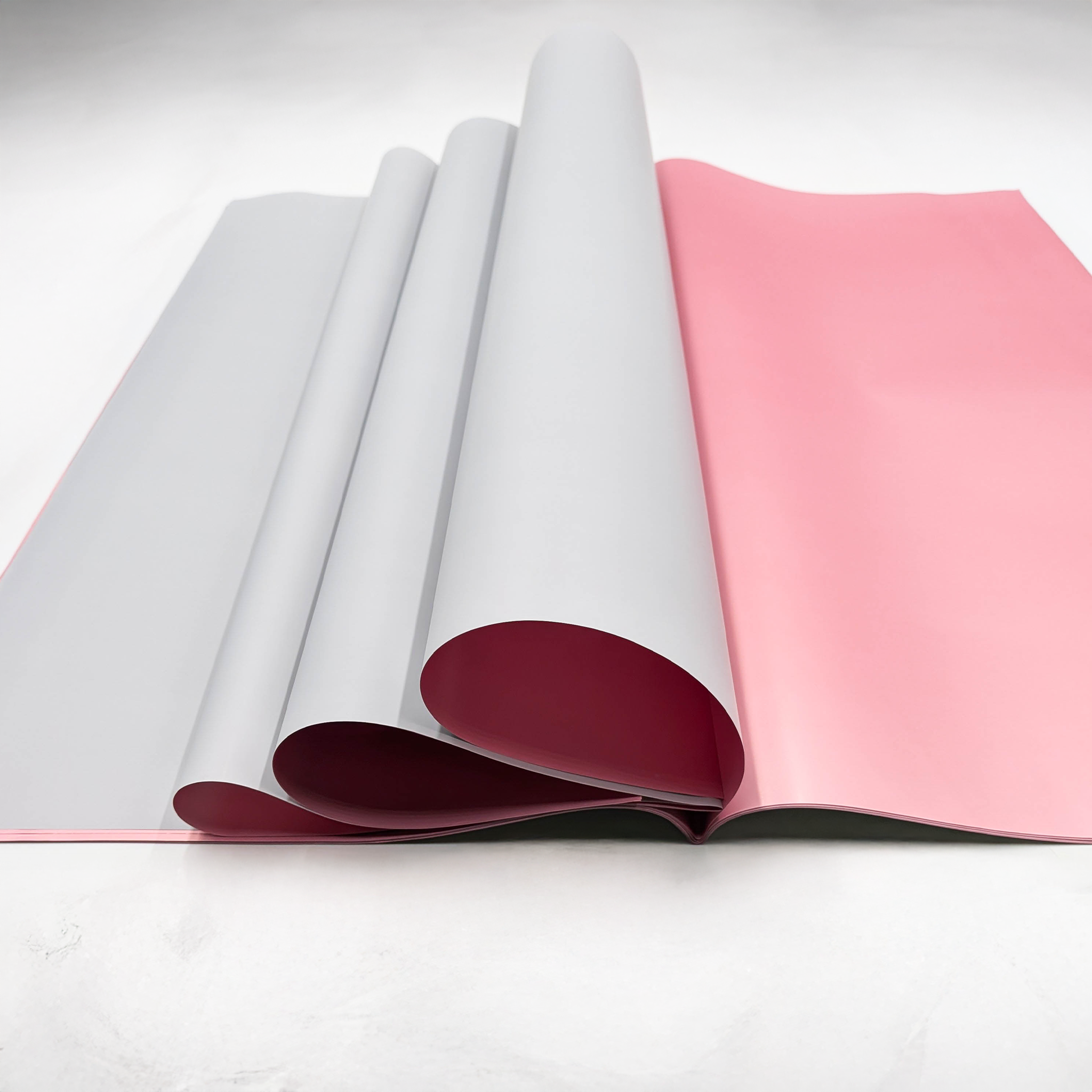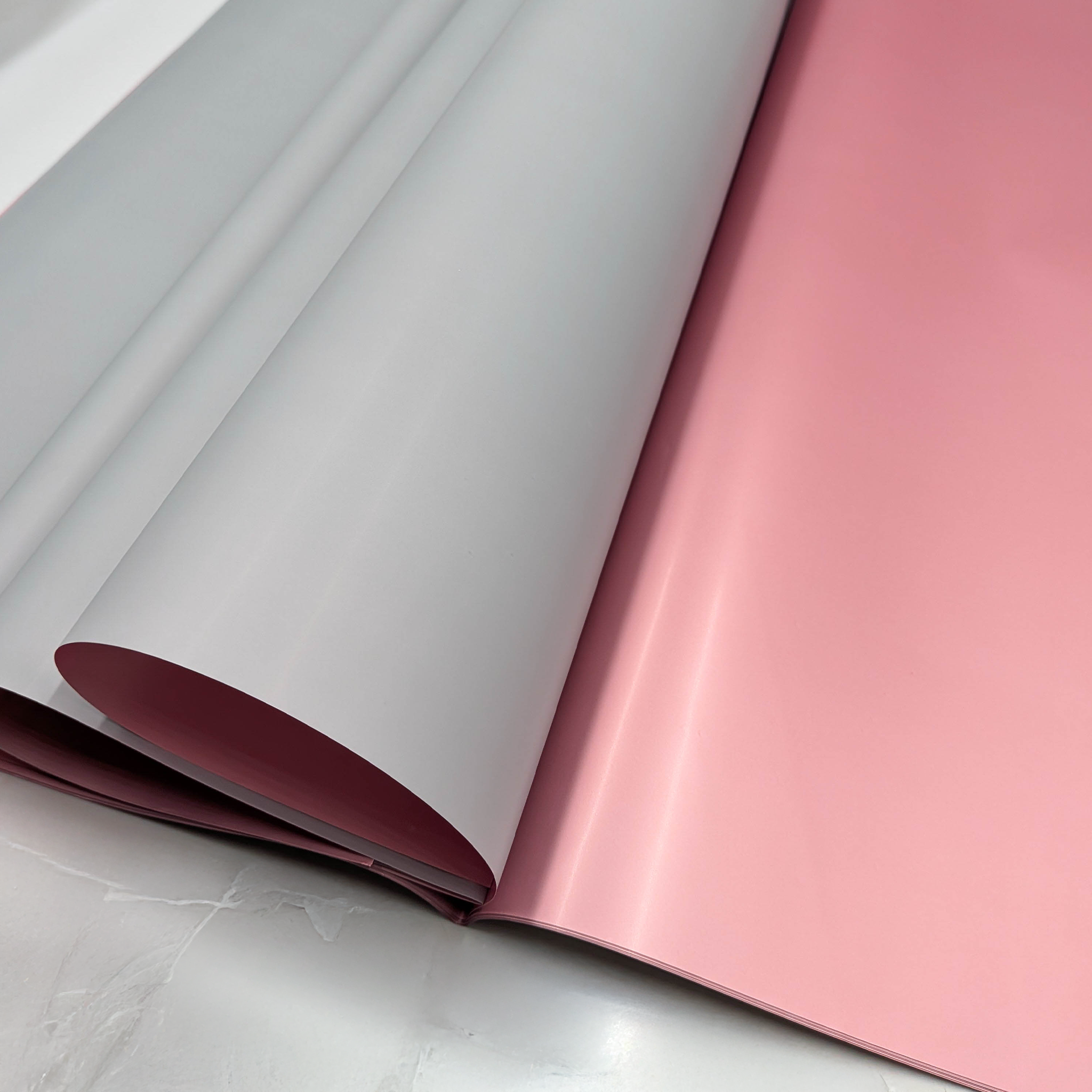 One-sided coloring of the floral foil in a chosen, uniform color, combined with the reverse side in a coppery pink shade, gives it a unique and elegant appearance. This double-sided coloring sets the floral foil apart from other products, emphasizing its exclusive character.