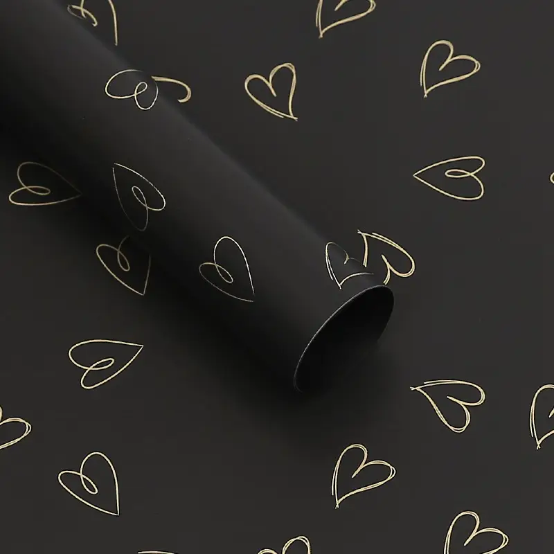 The Black Heart floral wrap made from durable BOPP foil is a stylish and expressive packaging material designed for modern and romantic floral arrangements. The foil is waterproof and moisture-resistant, ensuring long-lasting aesthetics.