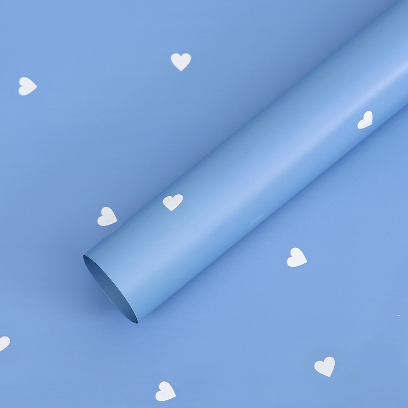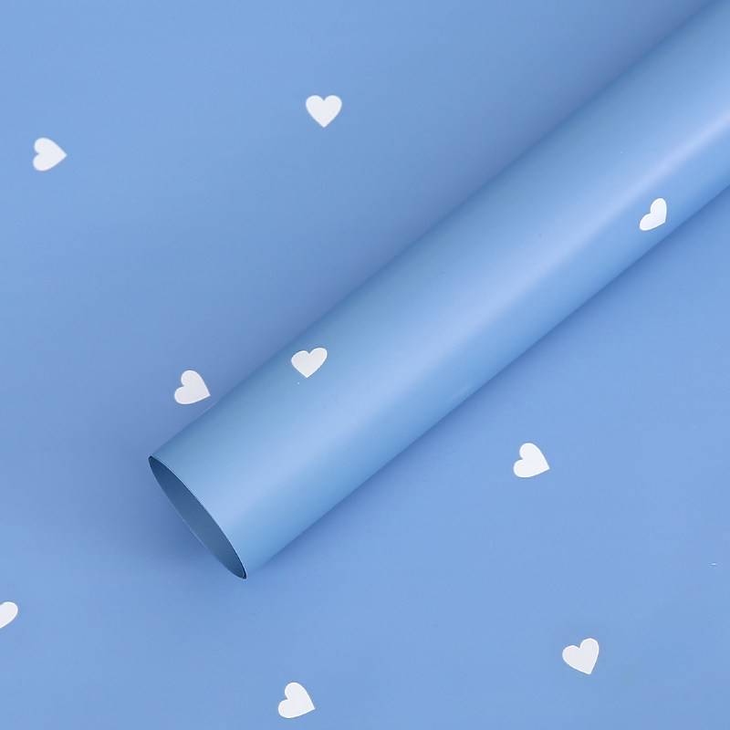 Blue florist foil with delicate heart motifs combines a romantic pattern with a cool, calming colour palette. The blue shade brings a sense of lightness, balance and freshness to floral arrangements, while the small hearts add a soft emotional accent without being overly decorative.