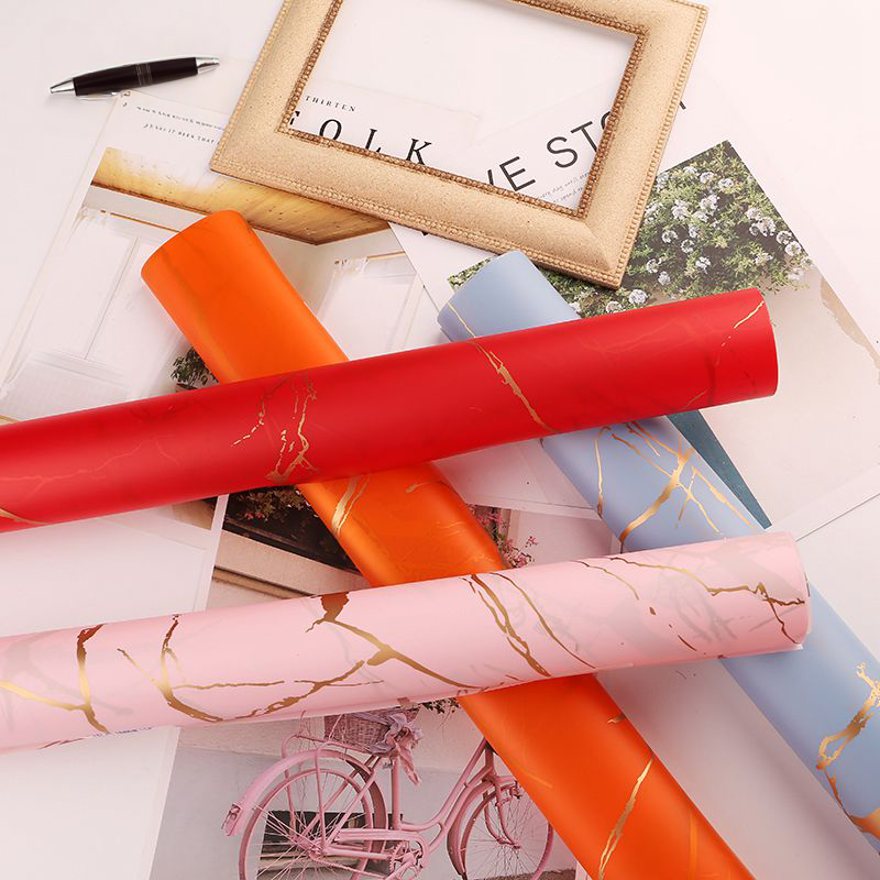 The "Marble" series of floral foil is a product that combines the elegance of marble pattern with practical properties. Made from BOPP (shiny polypropylene film), it is waterproof and water-resistant.