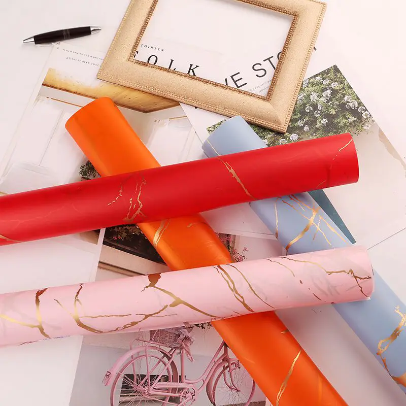 The "Marble" series of floral foil is a product that combines the elegance of marble pattern with practical properties. Made from BOPP (shiny polypropylene film), it is waterproof and water-resistant.