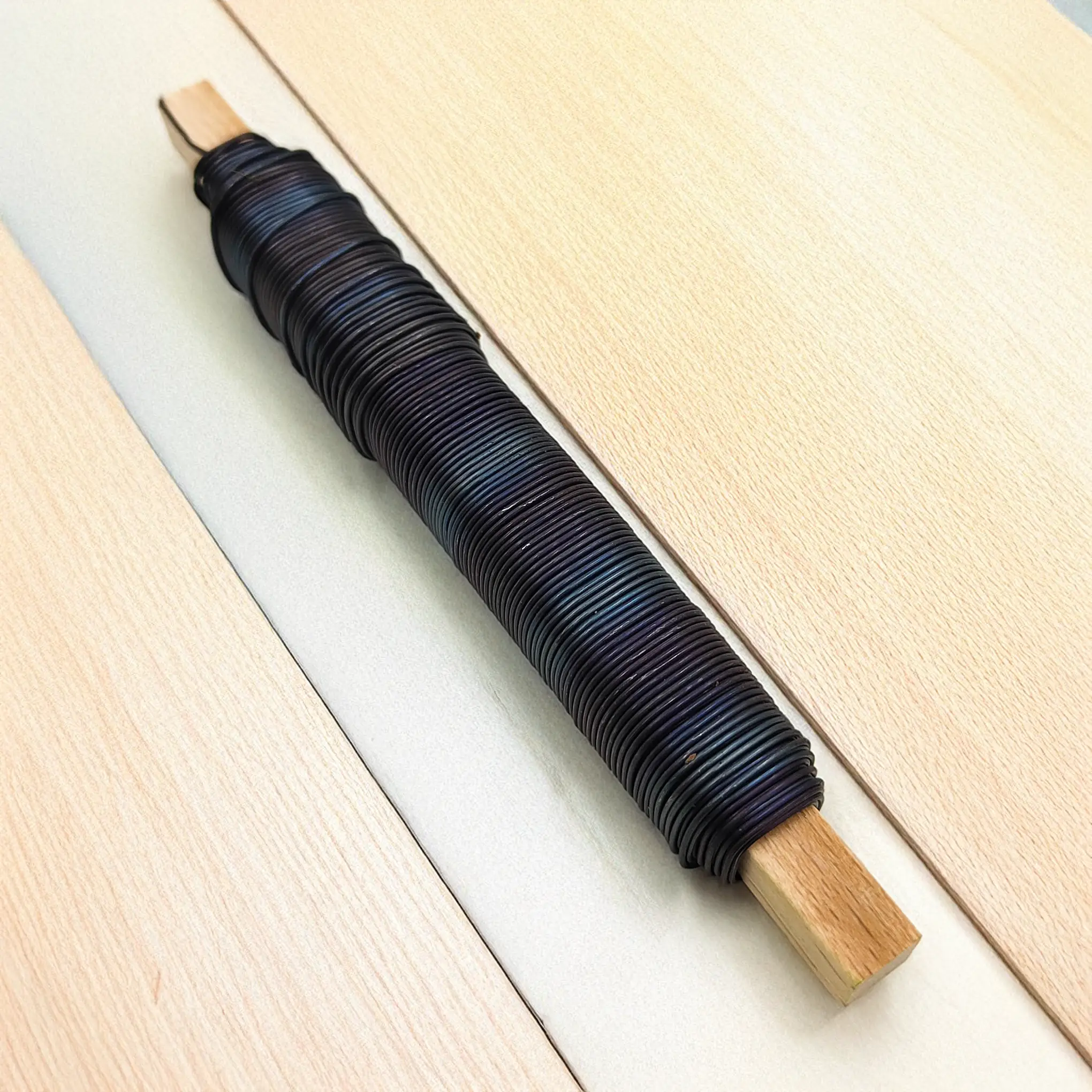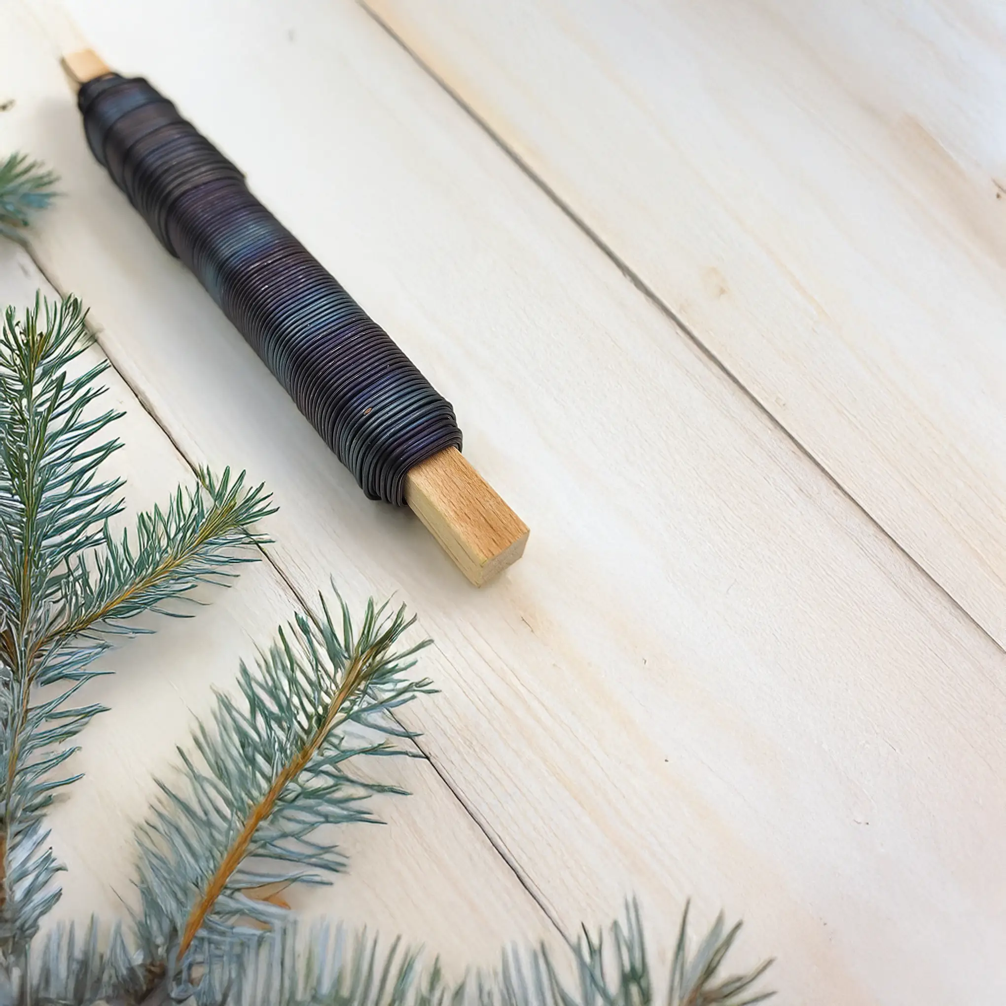 This black annealed florist wire on a wooden spool is a reliable tool for floral arrangements, DIY crafts, and bonsai training. Thanks to its untreated, annealed finish, it remains flexible yet strong, making it ideal for shaping, binding, and securing various components.