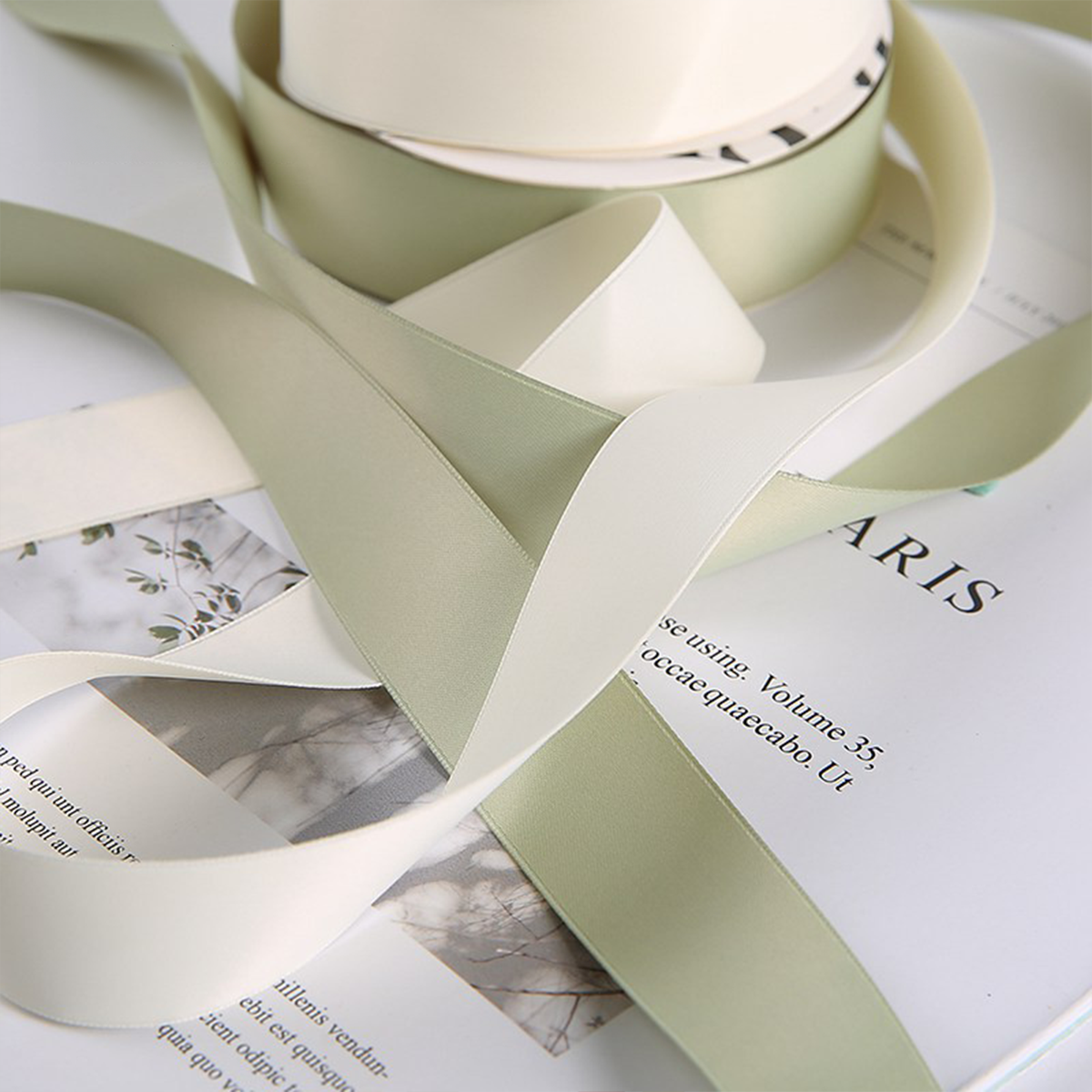 Made of high-quality satin, the ribbon is soft and flexible, facilitating manipulation and shaping. Its smooth surface adds elegance to every project, emphasizing its professionalism and aesthetics.