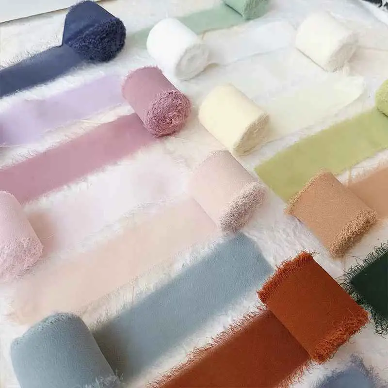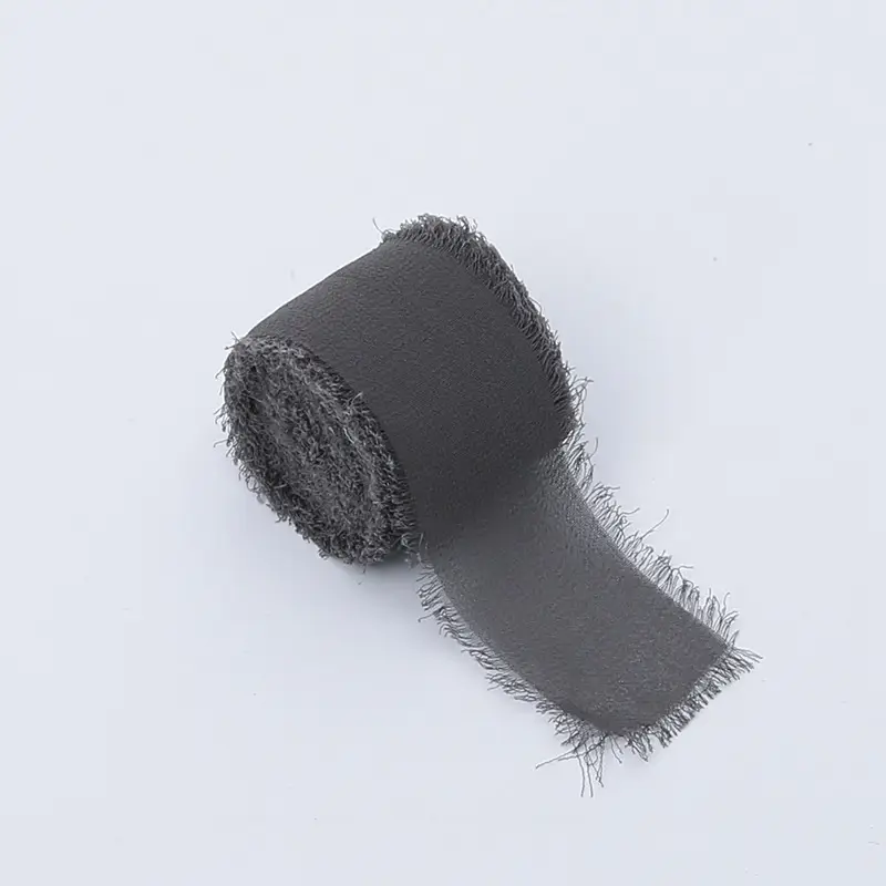 The gently frayed edges and airy chiffon structure make this ribbon perfect for modern, minimalist, industrial and elegant styling. Graphite pairs beautifully with white, beige, black, metallic accents, greenery and dried flowers.