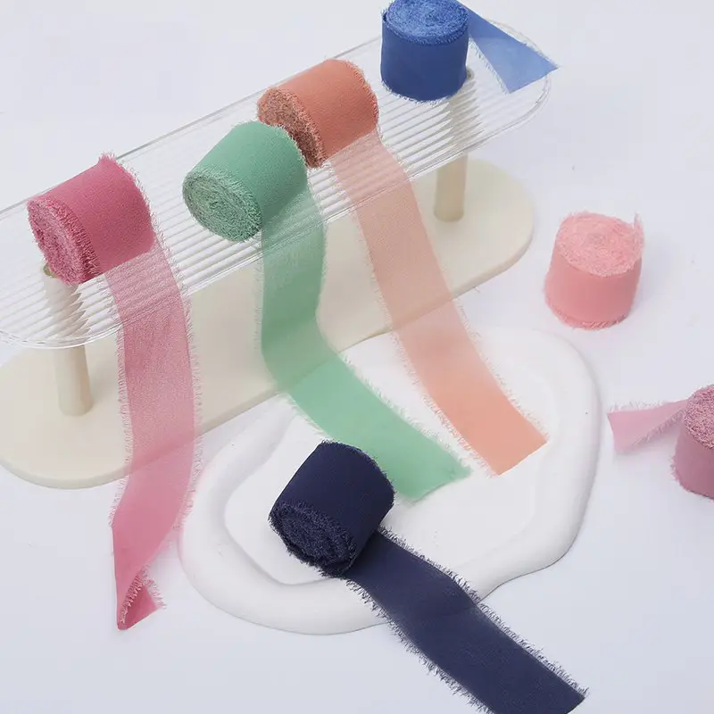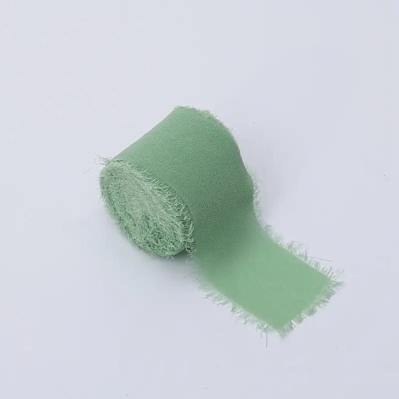 The softly frayed edges and airy chiffon structure make this ribbon perfect for boho, natural, romantic and modern styling. Pastel green pairs beautifully with white, beige, light wood, eucalyptus greenery and dried flowers.