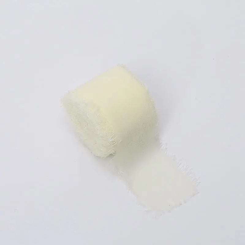 Thanks to its gently frayed edges and semi-transparent structure, the ribbon fits perfectly in boho, romantic, and classic styles. Its pastel, warm tone pairs beautifully with white, eucalyptus green, gray, gold, and flowers in cream, peach, or yellow shades.