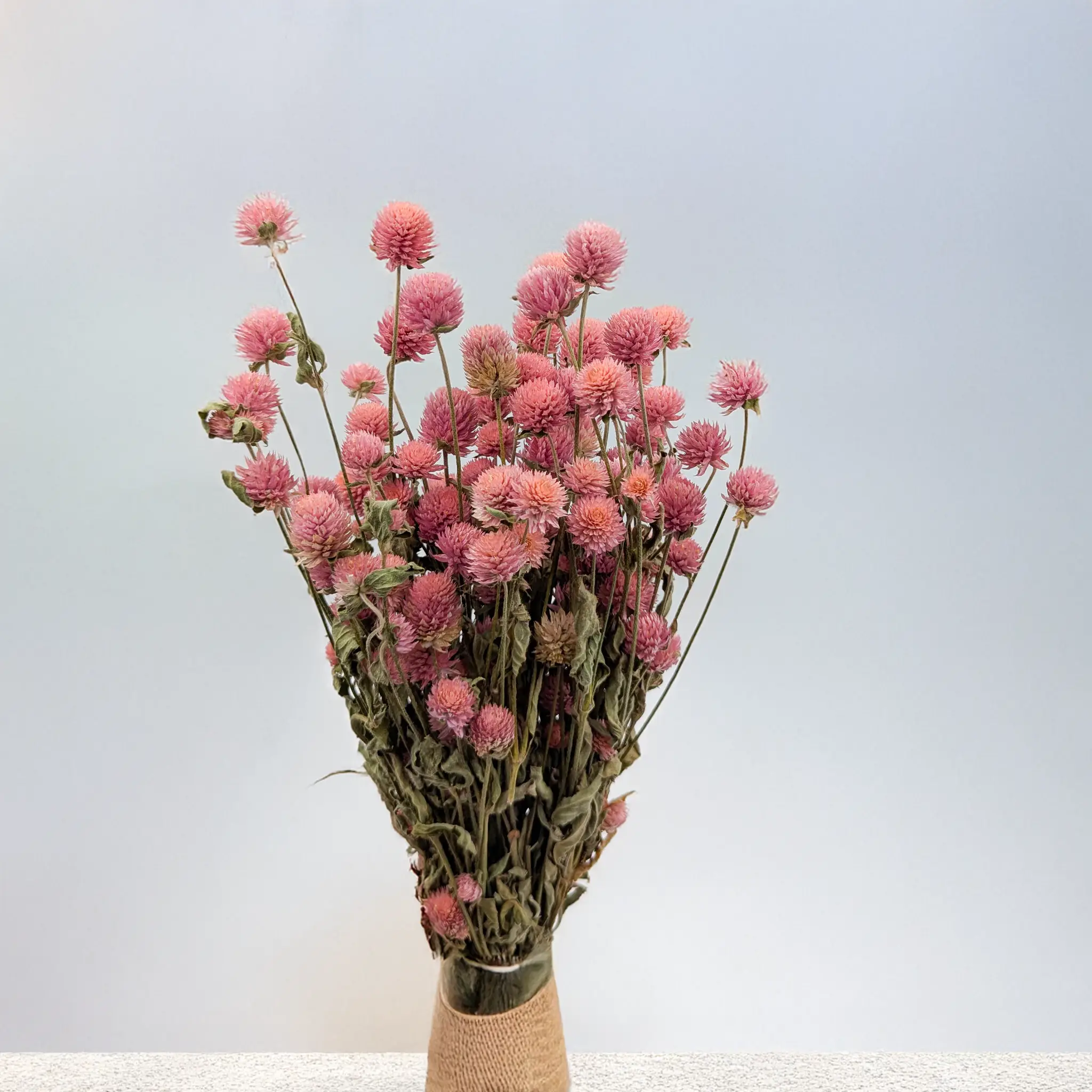 In summary, dried pink globe amaranth is not only an aesthetic but also a practical decorative element that introduces delicacy, subtleness, and the harmony of nature into interiors. Its natural appearance and color add a unique charm to rooms and create a pleasant atmosphere.