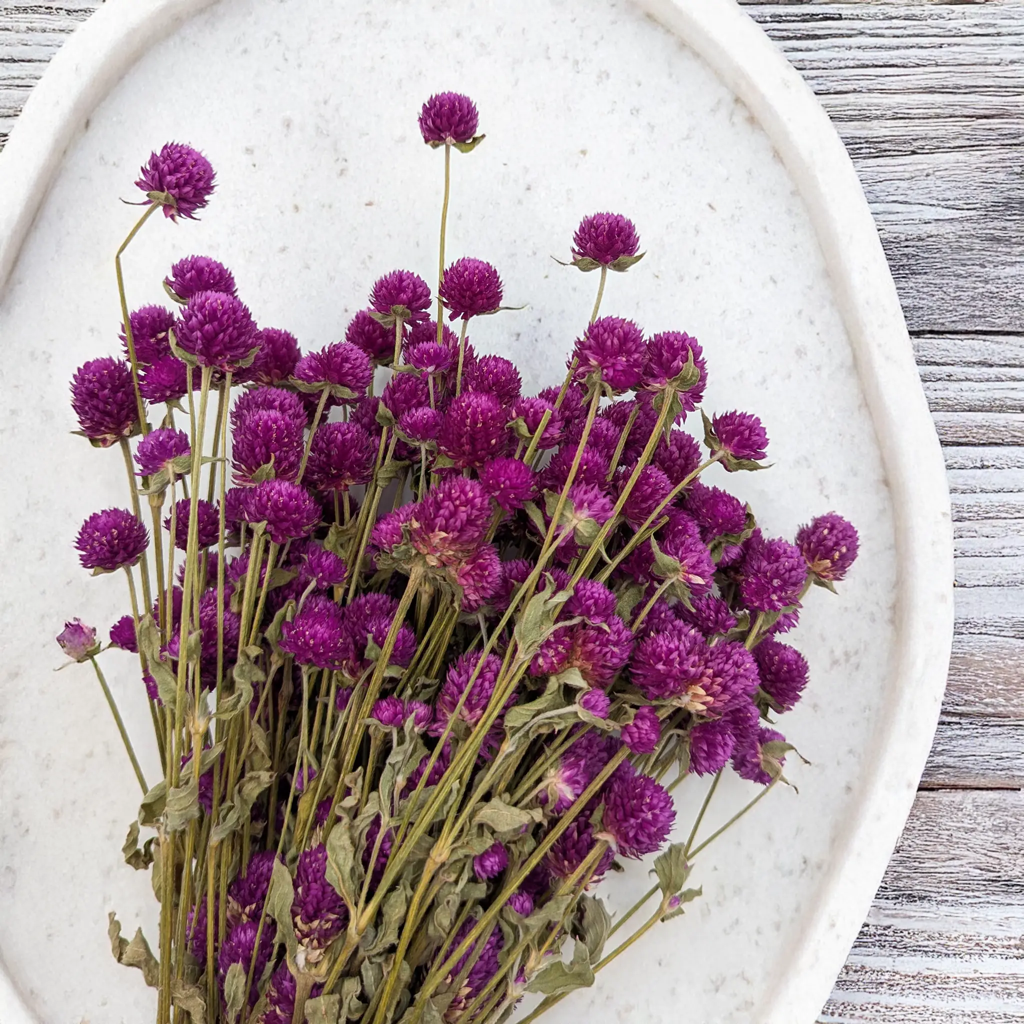 Dried Globe Amaranth requires no maintenance – it is durable and retains its beauty for months. Store in a dry, ventilated place away from sunlight and moisture. Natural variations in color and shape are to be expected for dried plants.