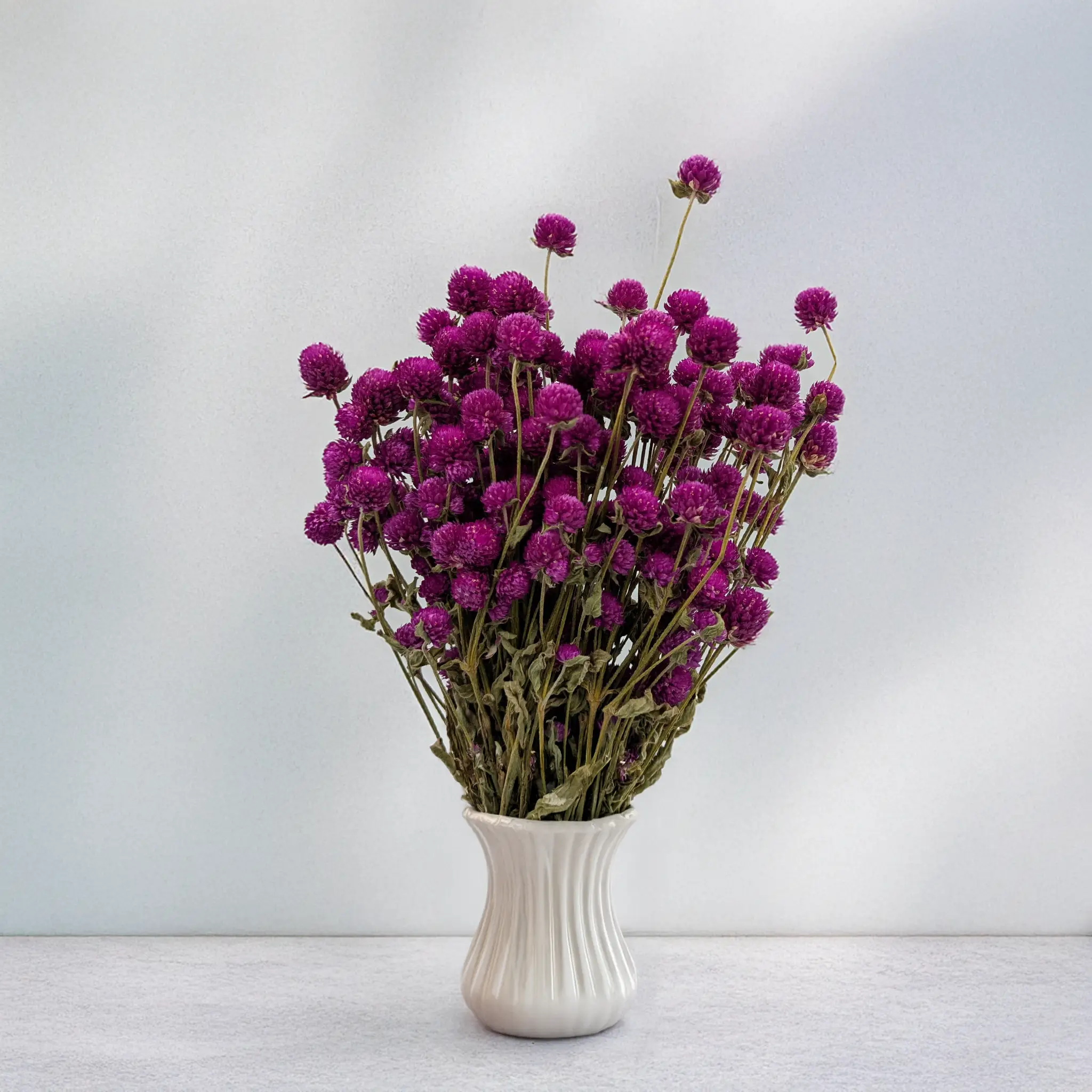 Dried Globe Amaranth (Gomphrena globosa) in purple is a refined and natural decorative element that brings harmony, creativity, and sophistication to any interior. Its deep, royal hue symbolizes imagination and balance, making it a perfect accent for romantic, boho, or modern spaces. Each flower is carefully dried to preserve its delicate structure and vibrant color for months.