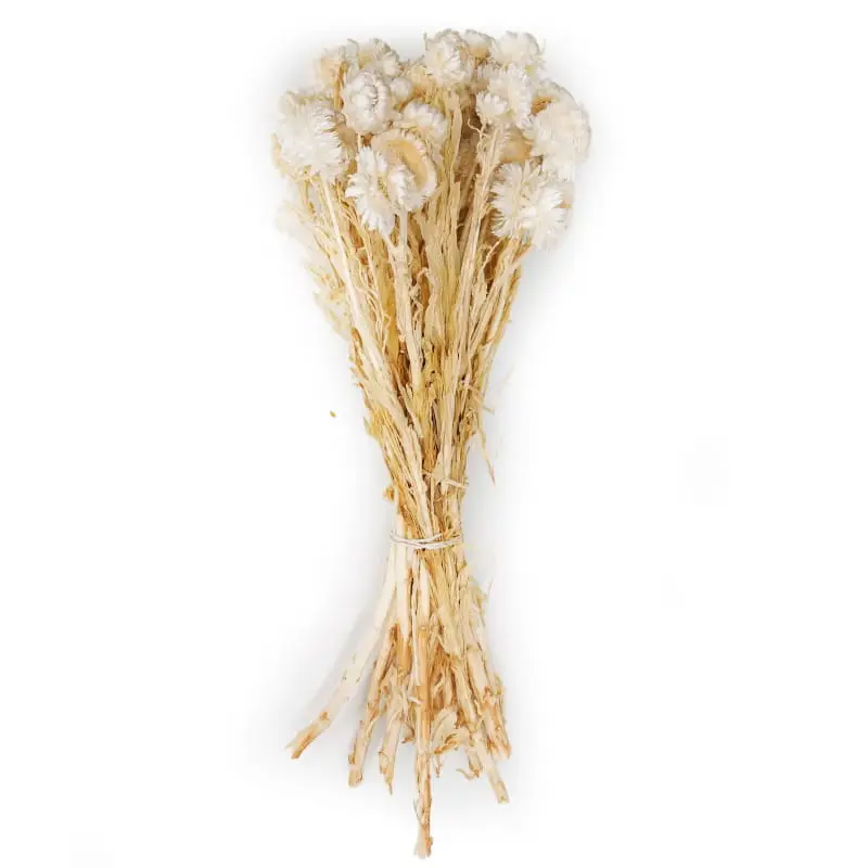 Bleached dried immortelle is an elegant and versatile floral addition that fits seamlessly into any arrangement. Its neutral tone offers softness, lightness, and timeless charm, making it ideal for rustic, minimalist, romantic, or boho interiors and compositions.