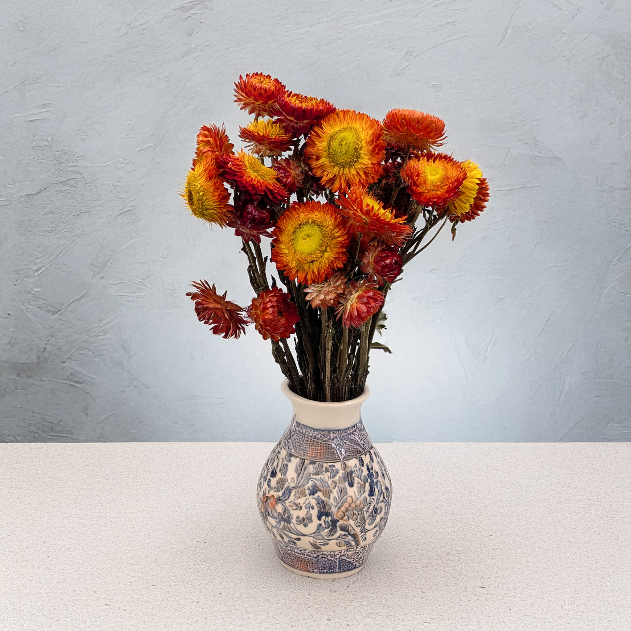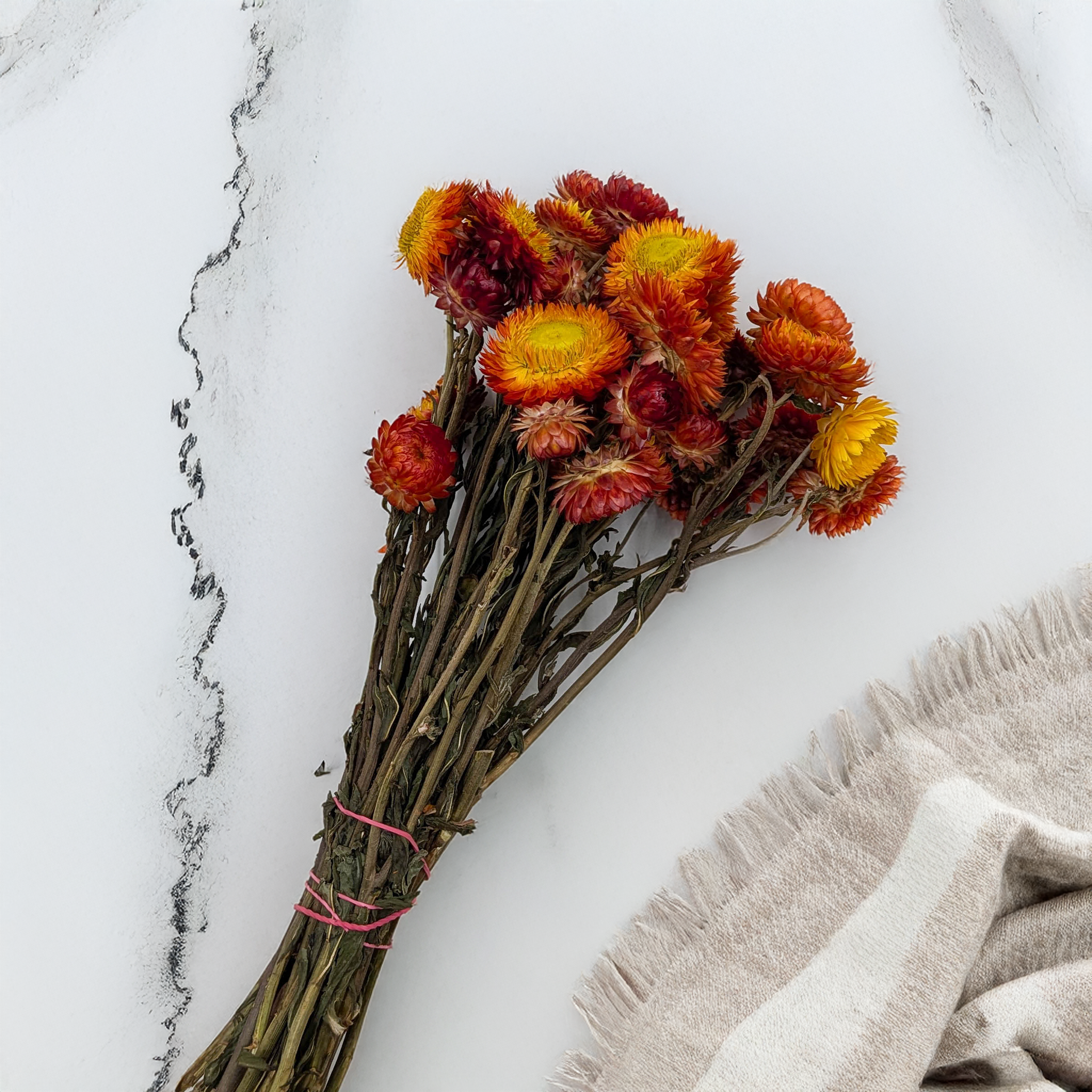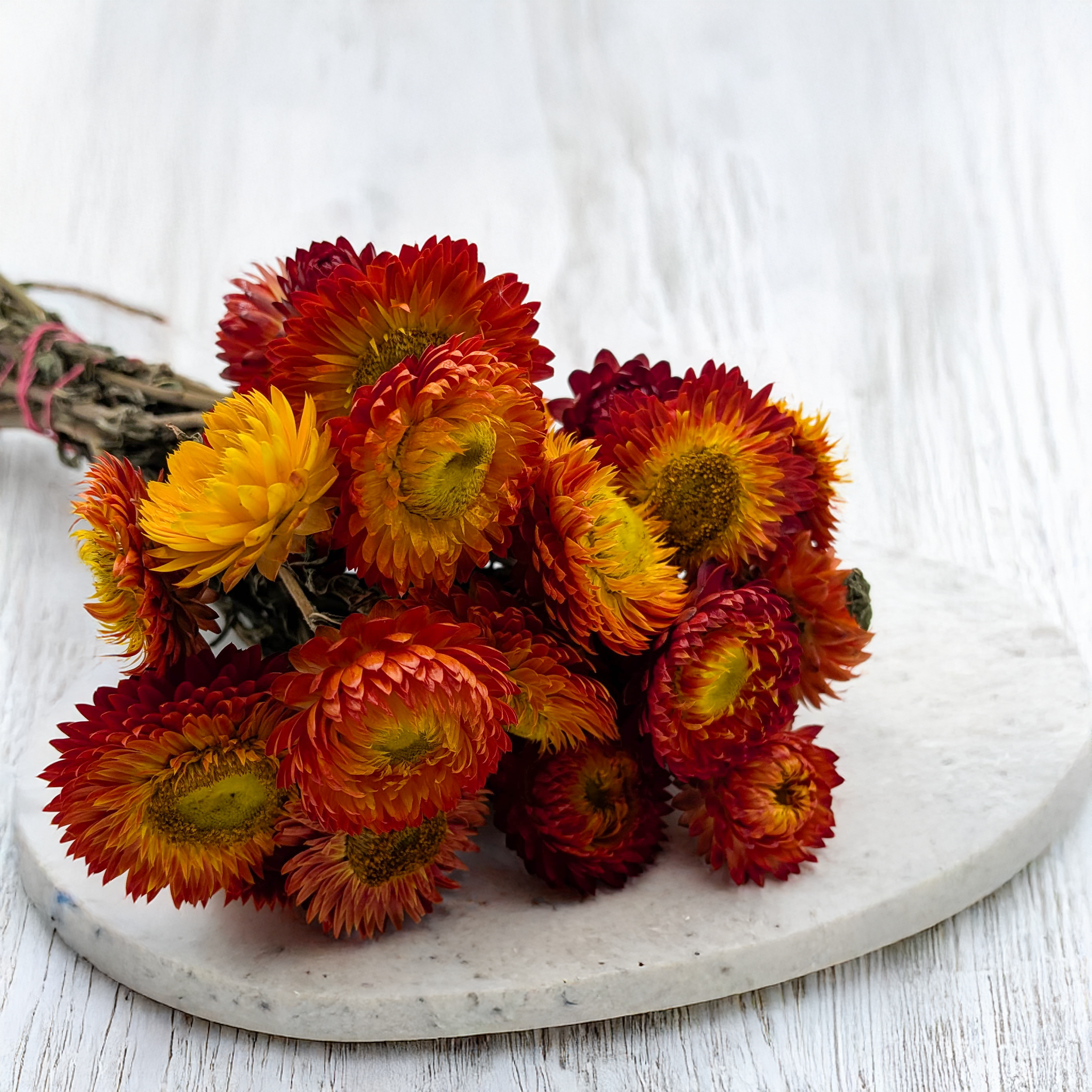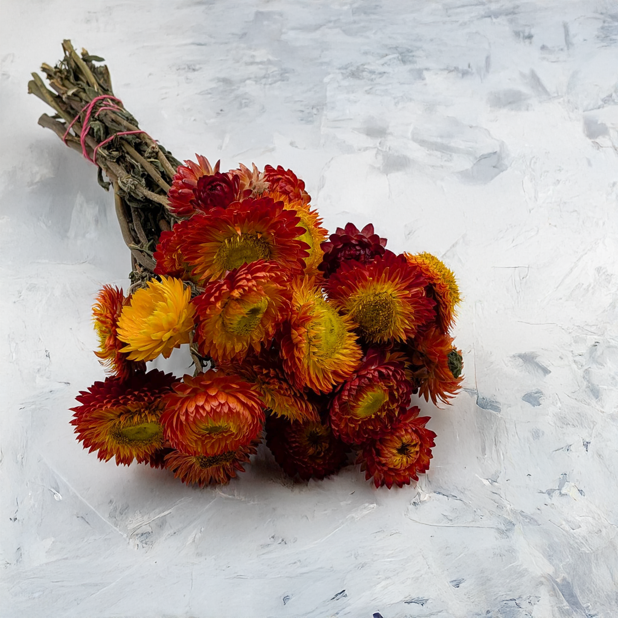 Orange dried immortelle brings vibrant energy and warmth into any interior or floral design. Its bold color makes a strong visual impact and represents enthusiasm, creativity, and joy.
