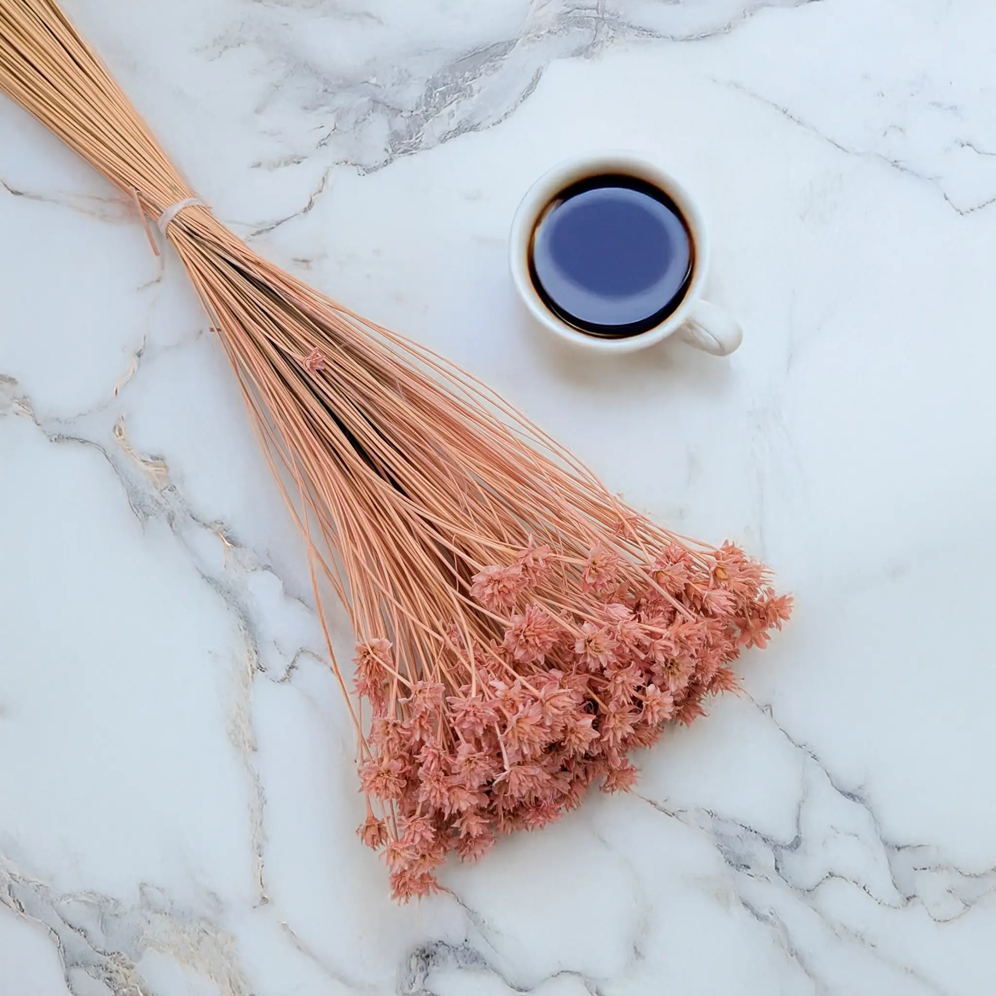 - Floral Arrangements: Pink dried flowers pair wonderfully with light shades of purple, white, gray, and gold, creating delicate and elegant arrangements.