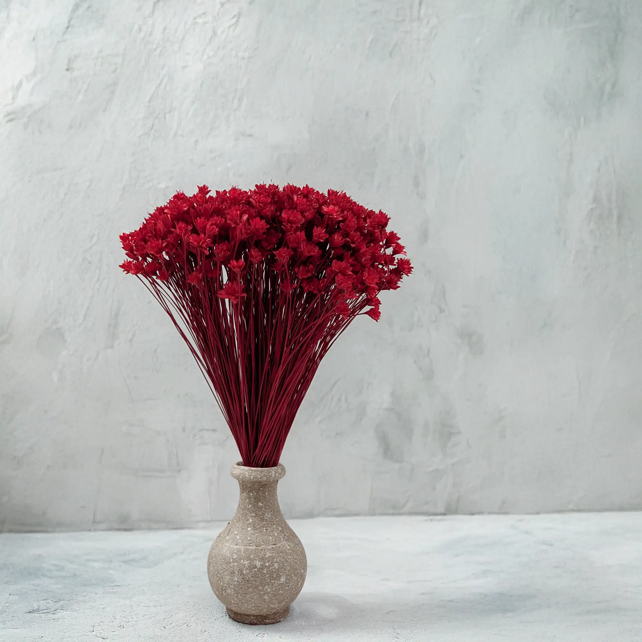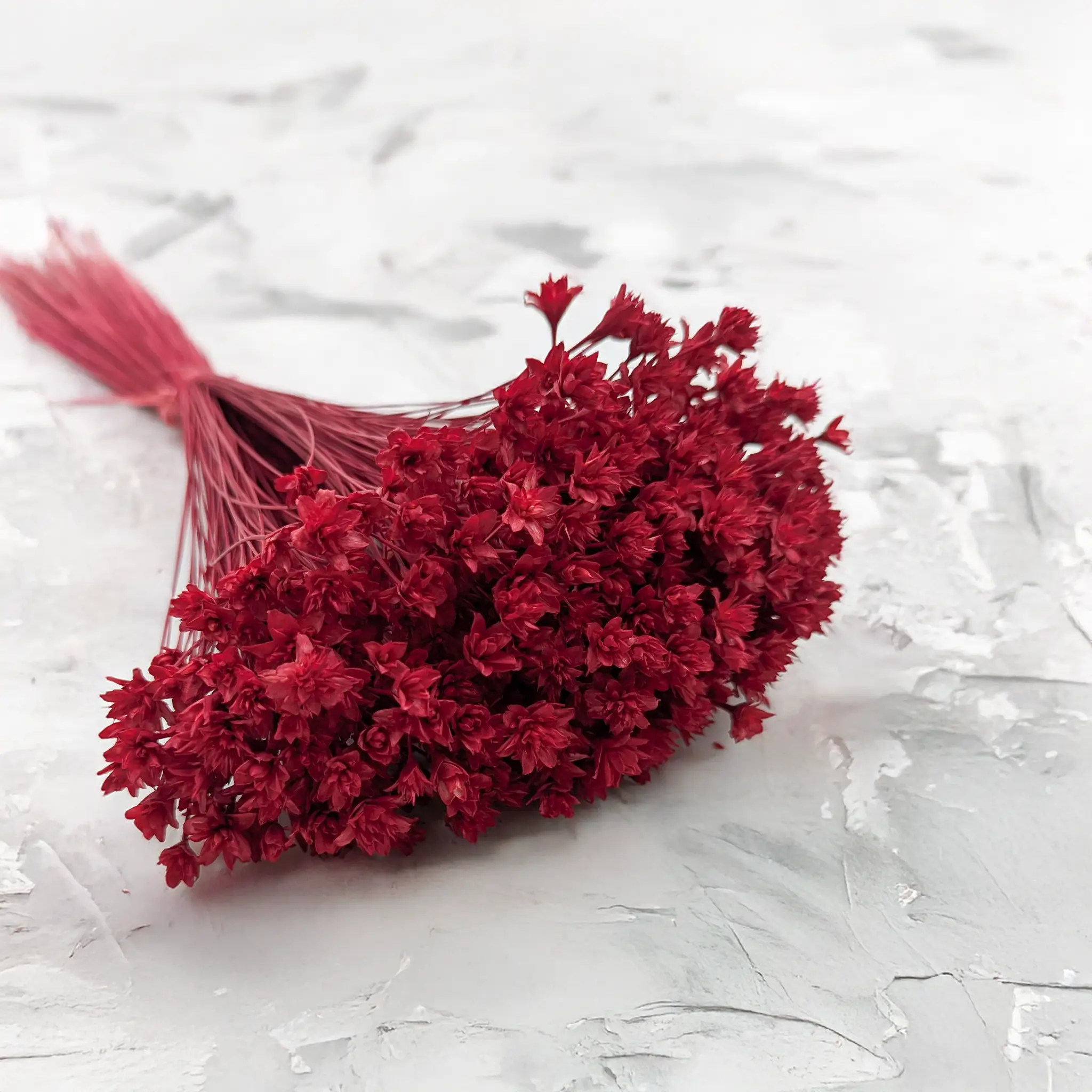 Discover the beauty of dried Hill Flowers in an intense, red color. This unique bouquet stands out with its rich, vibrant shade of red that will enliven any interior. The flowers are not only beautiful but also incredibly durable, allowing you to enjoy their charm for a long time without any special care.