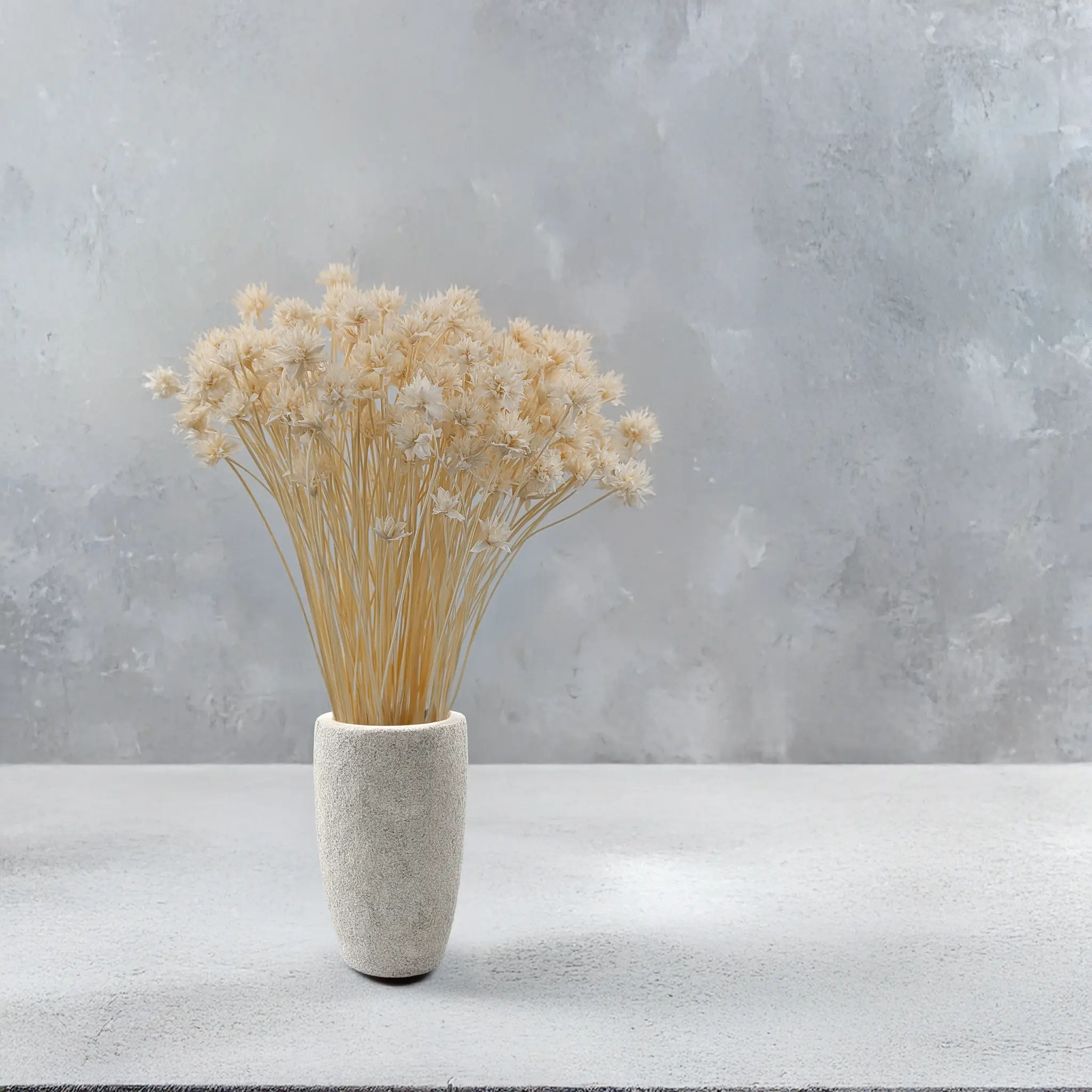 Discover the subtle charm of bleached dried Hill Flowers. This elegant bouquet is a versatile decoration that brings a sense of purity and tranquility to any interior. Thanks to the bleaching process, the flowers retain their natural shape, becoming a long-lasting ornament for many months.