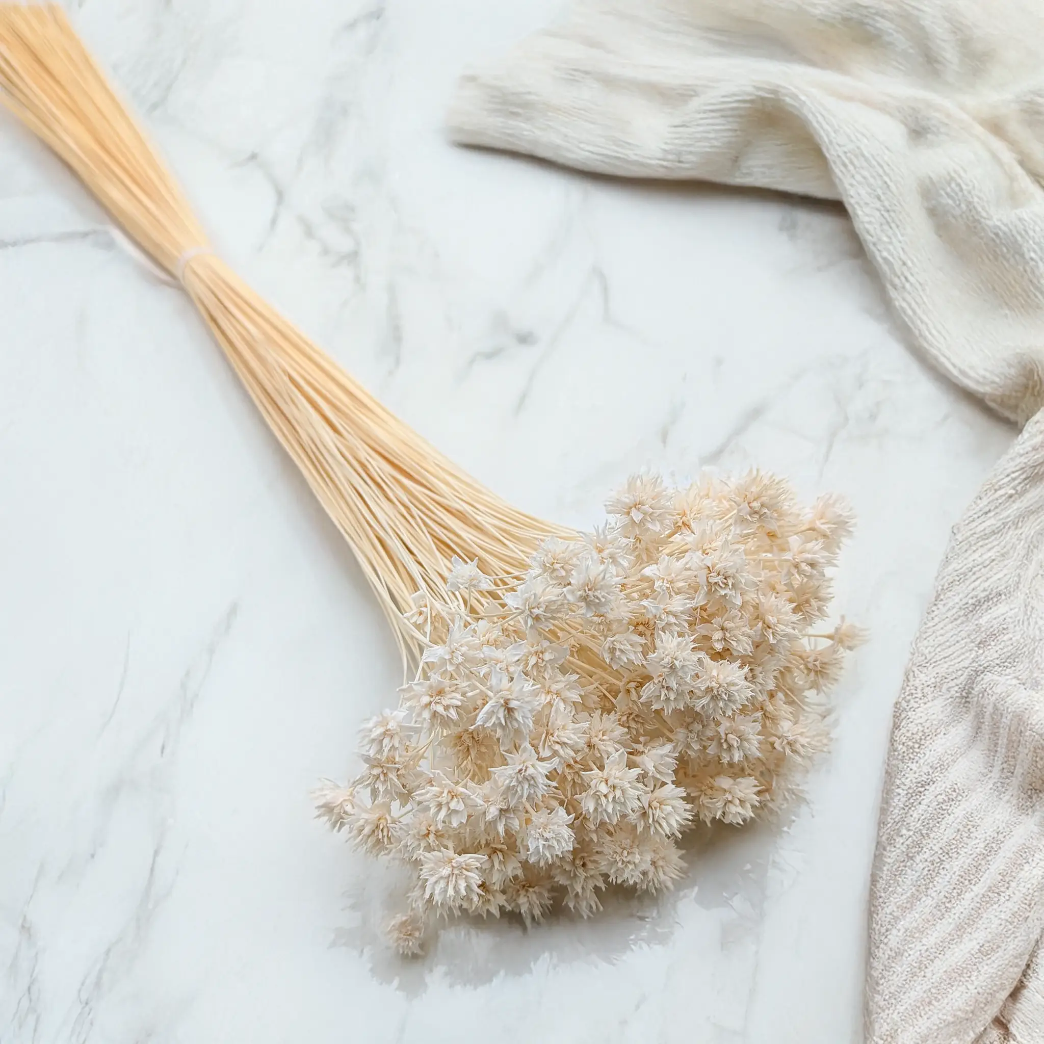 - Versatile Compositions: White dried flowers combine beautifully with other colors like pink, purple, or blue, adding a touch of elegance and lightness.