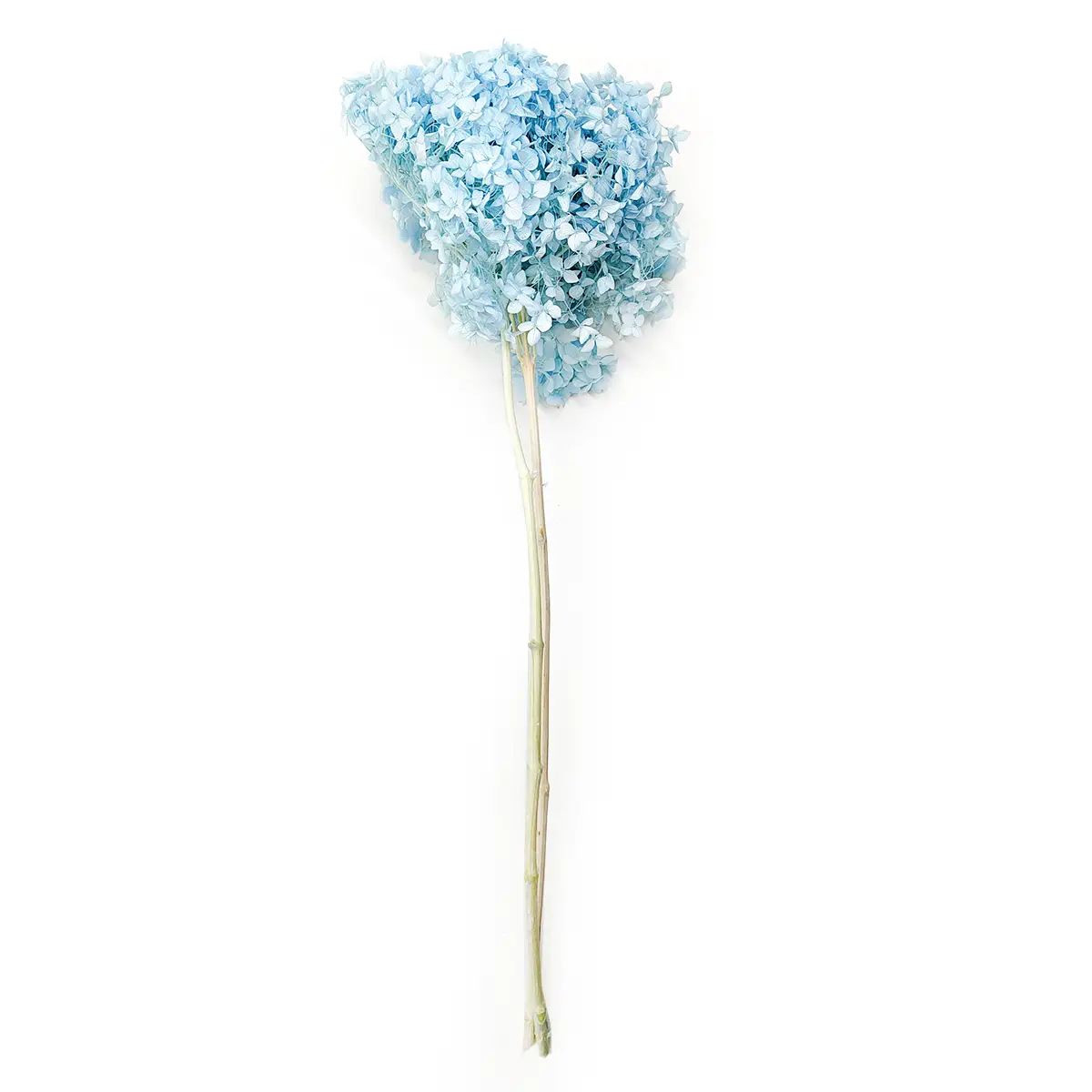 This preserved blue hydrangea is a luxurious floral element, perfect for adding serenity and refined color to floral arrangements. Thanks to stabilization, it retains its softness and natural shape, ideal for long-lasting interior decorations.