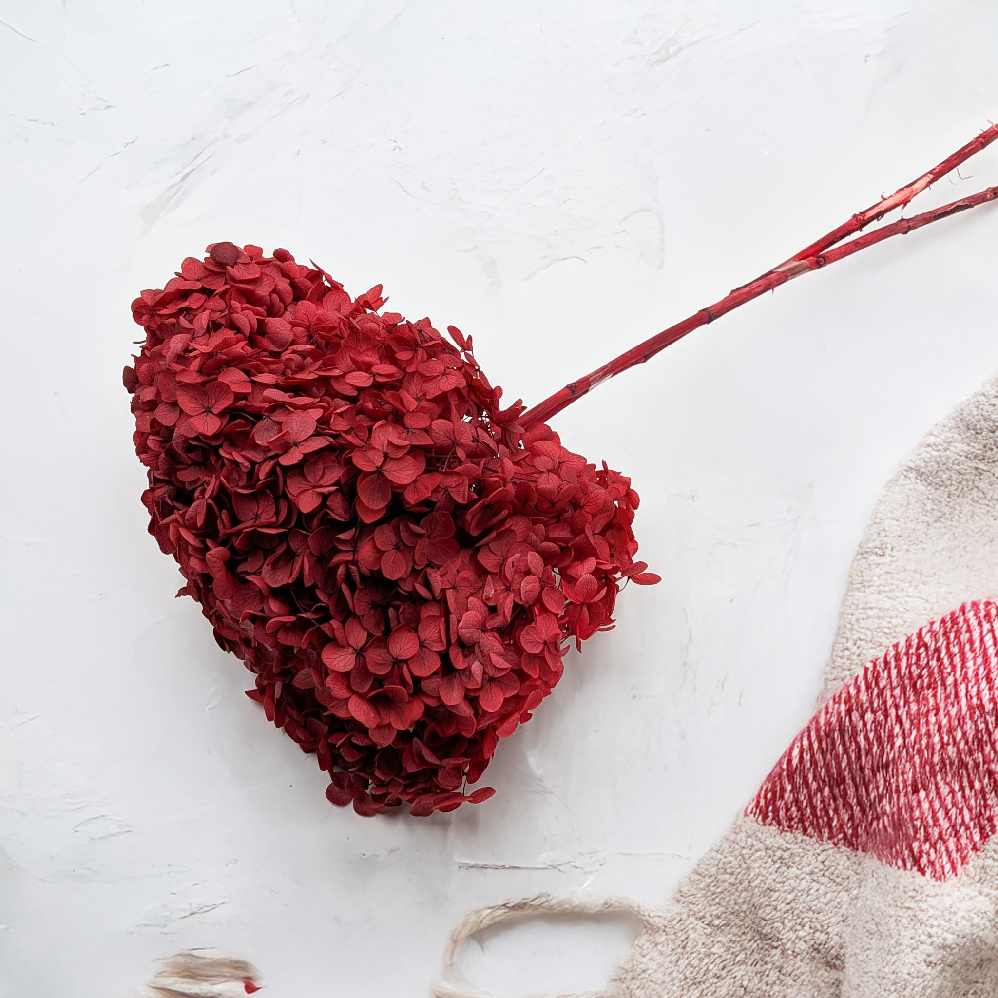Royal burgundy stabilized hydrangea captivates with its deep wine-inspired tone. This rich colour adds elegance and sophistication to floral compositions. It is perfect for autumn arrangements, wedding decorations and luxurious interiors styled in glamour, vintage or classic aesthetics.