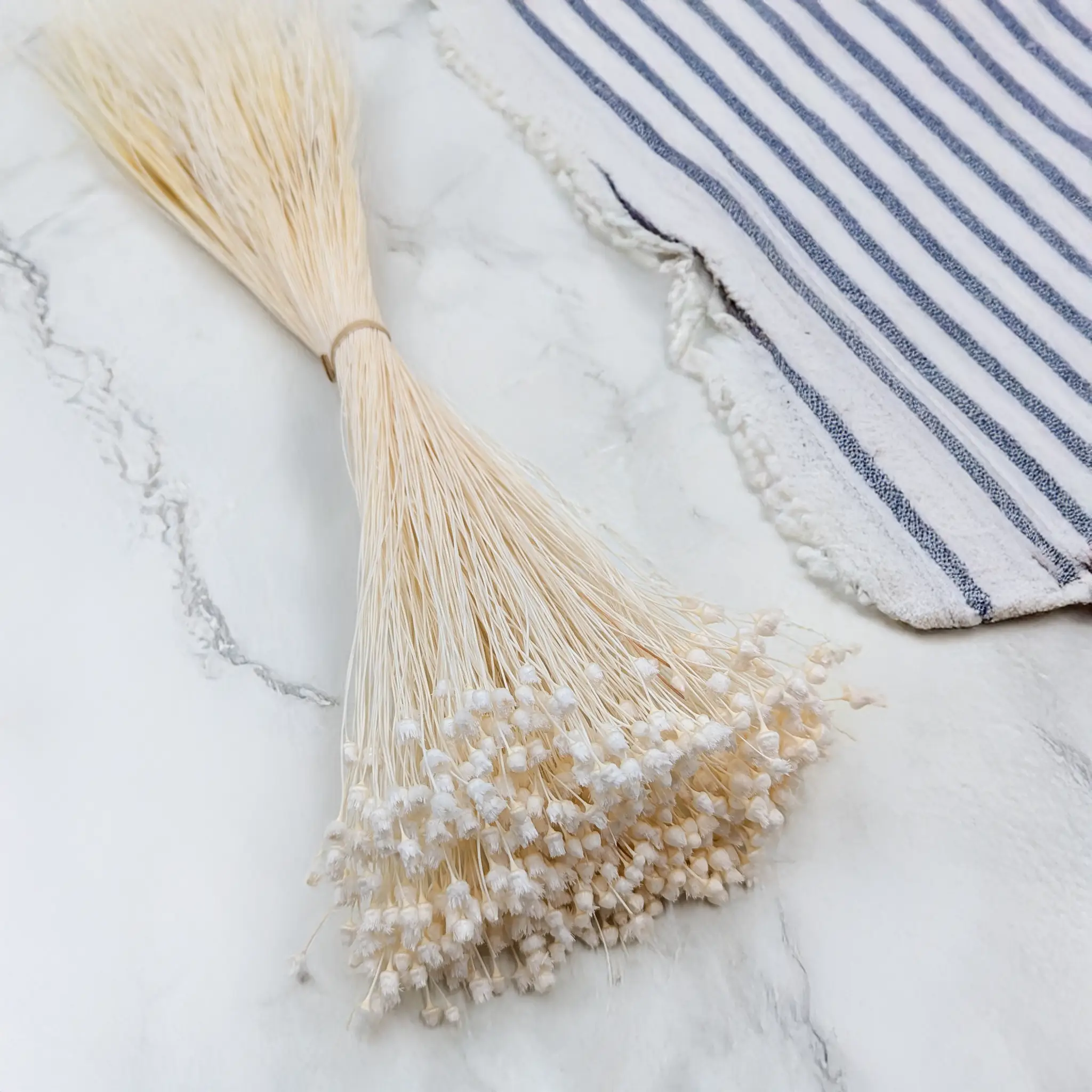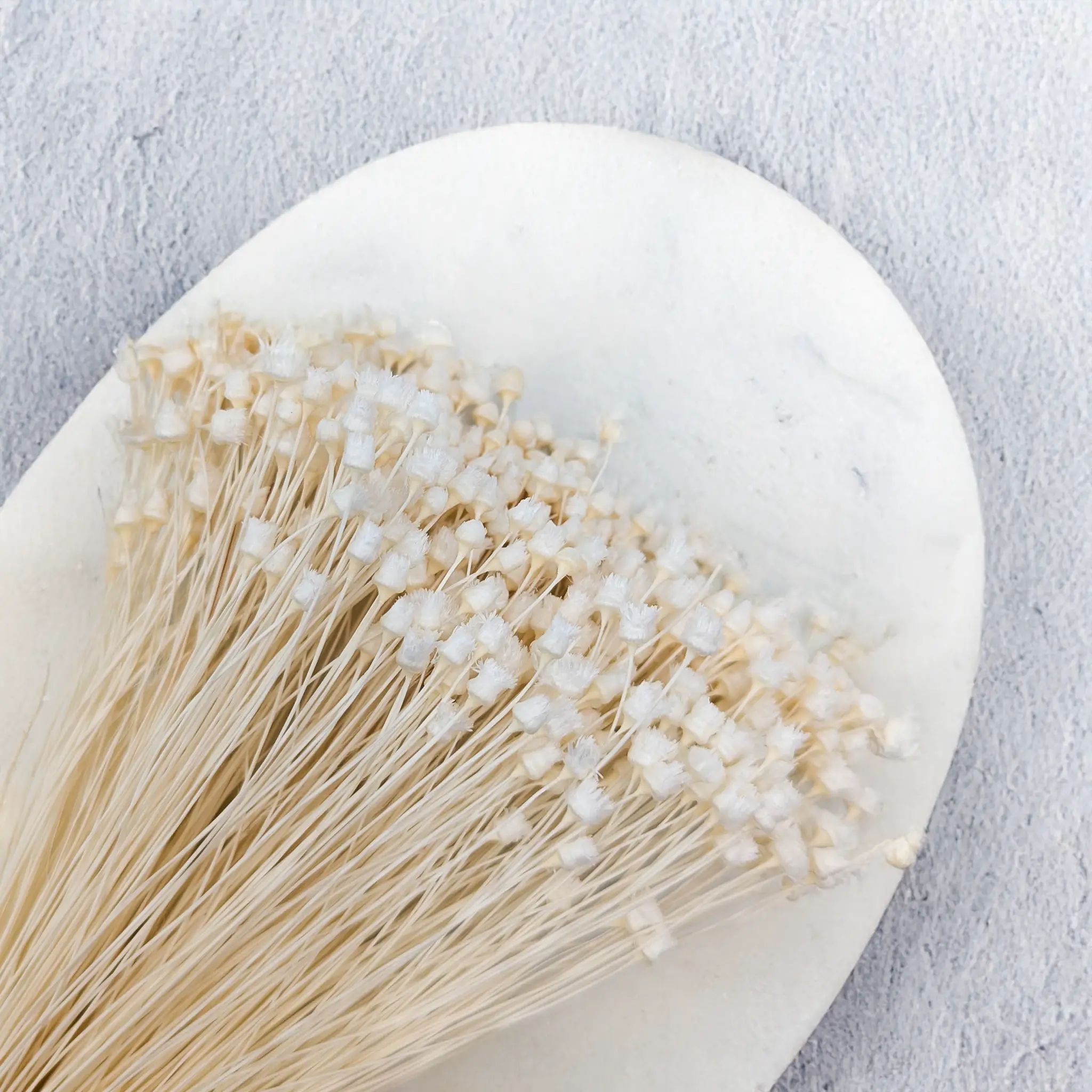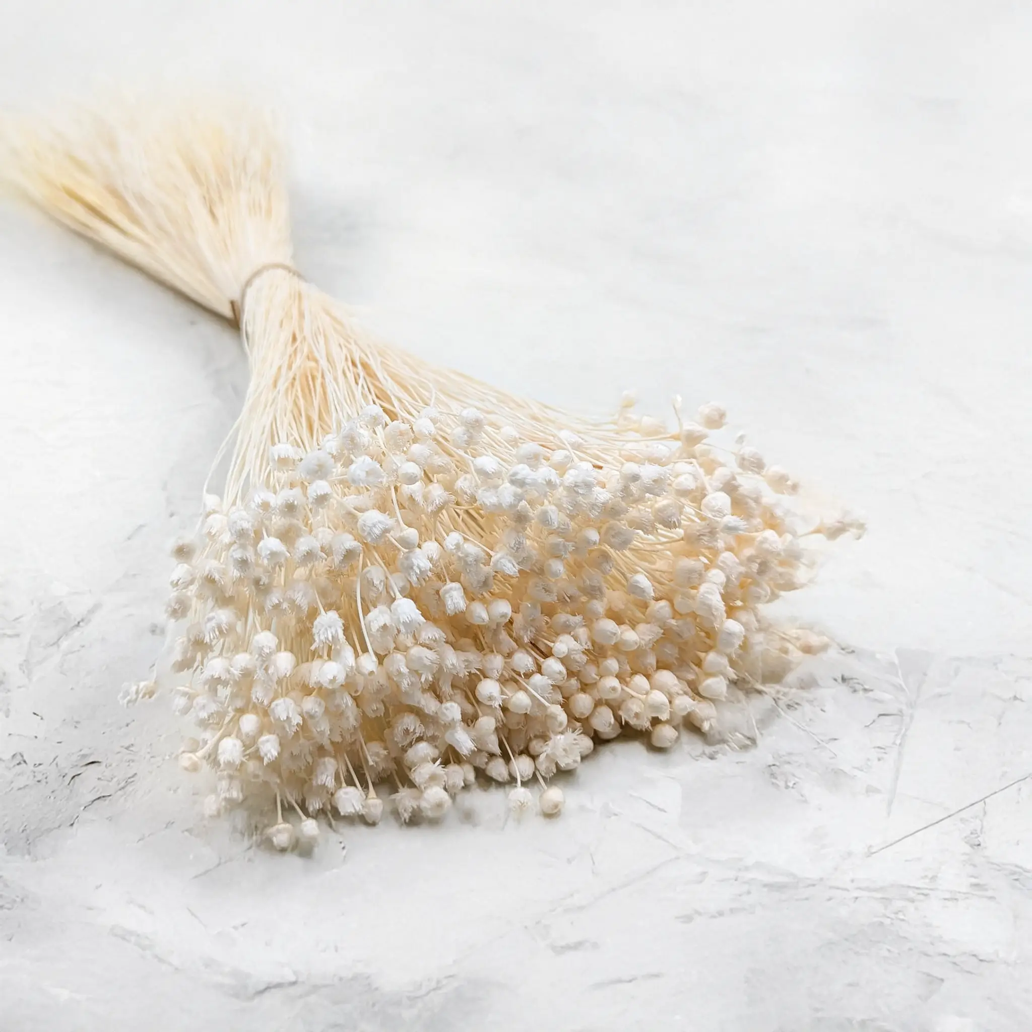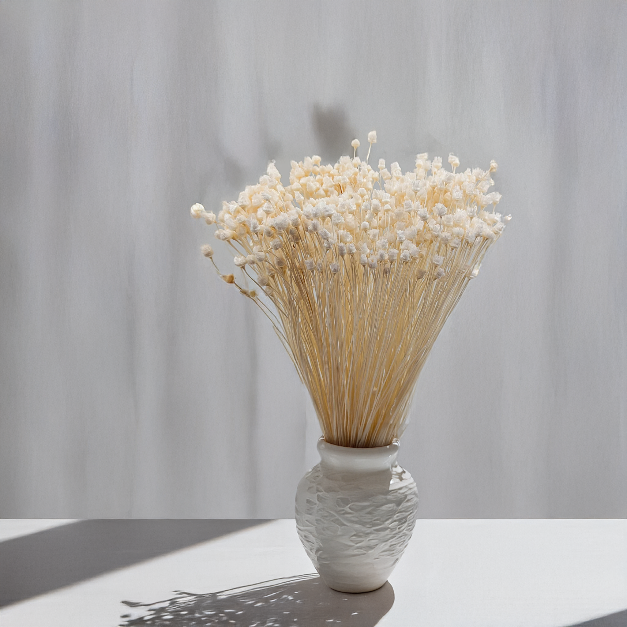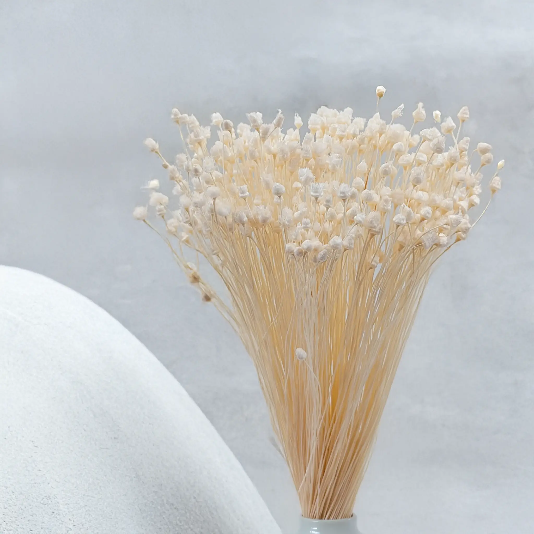 Discover the unique charm of bleached dried Jazilda. This plant, also known as burnet, has been bleached to achieve a light color and preserve its delicate, graceful stems and natural look for a long time. Its elegance and subtlety make it a perfect element for a wide range of arrangements.