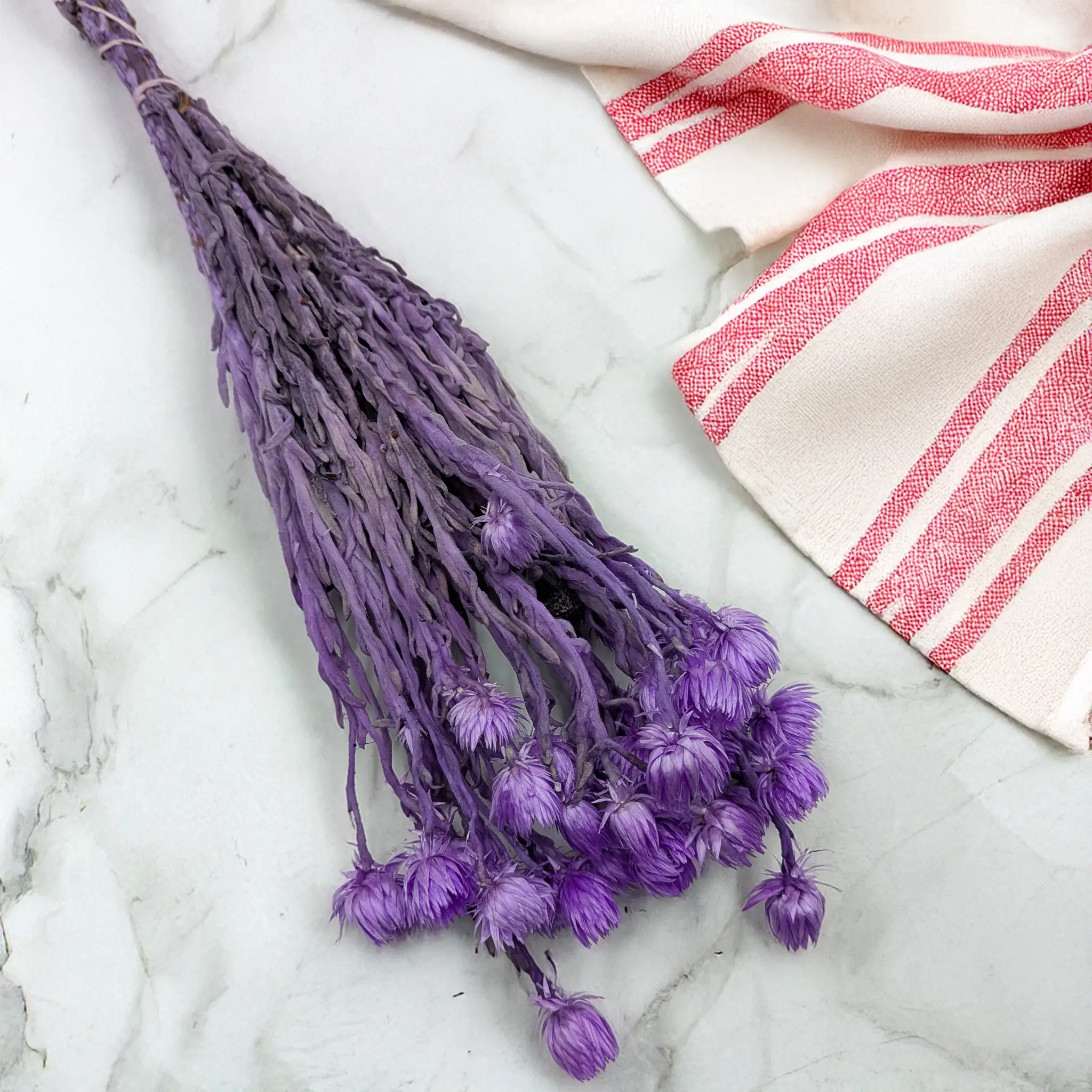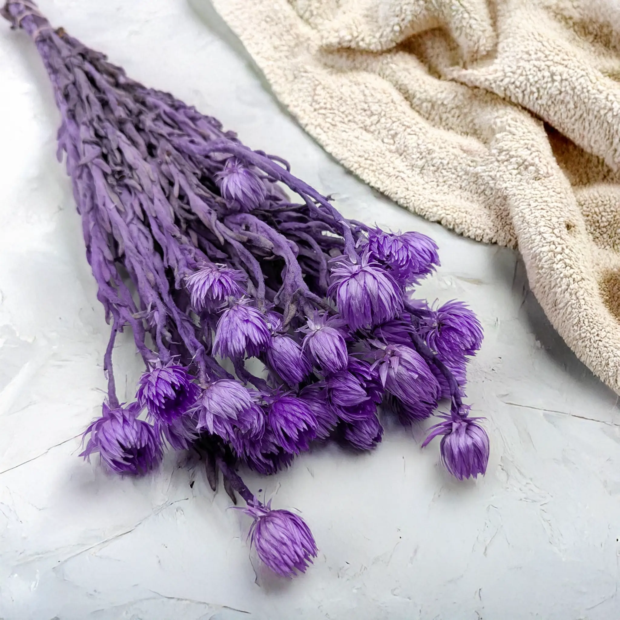 The lavender Kaaps Flower is a refined dried bloom that brings a soft and romantic touch to any decoration. Its delicate lavender petals with their papery texture add elegance and natural charm, making it a perfect accent for peaceful and stylish arrangements.