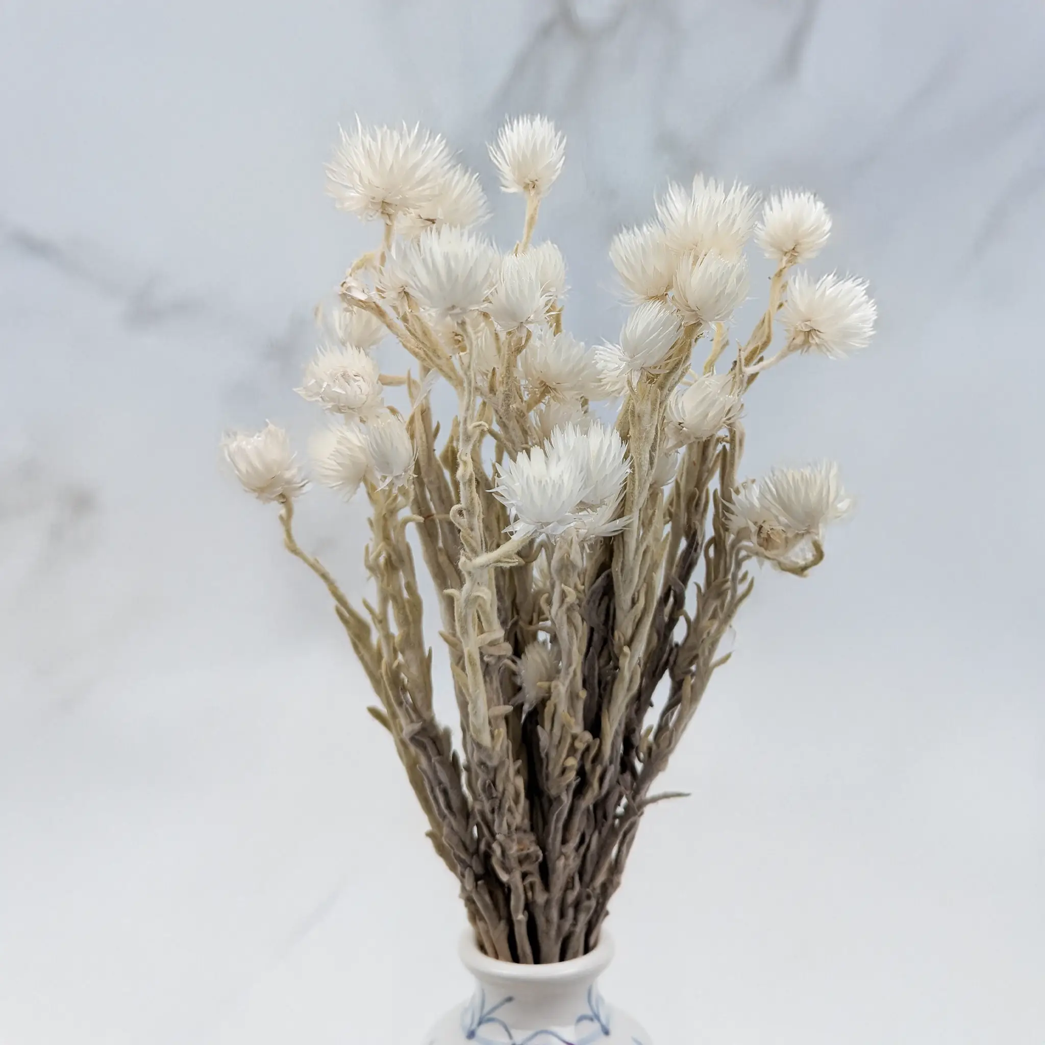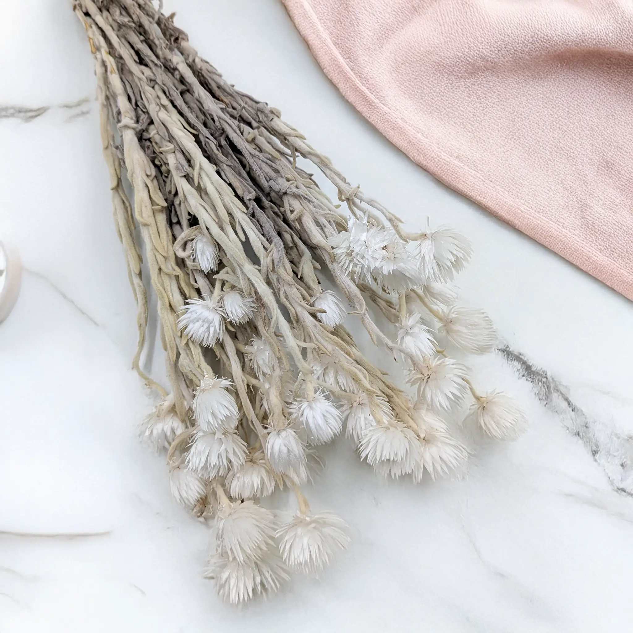 Dried Kaaps Flower - Phaenocoma prolifera, also known as Cape Strawflower, is a unique floral element that brings exotic charm to compositions. Its delicate, dried flowers retain their original appearance, adding exceptional character to bouquets and decorations. The petals resemble sun rays, creating a striking contrast and texture.