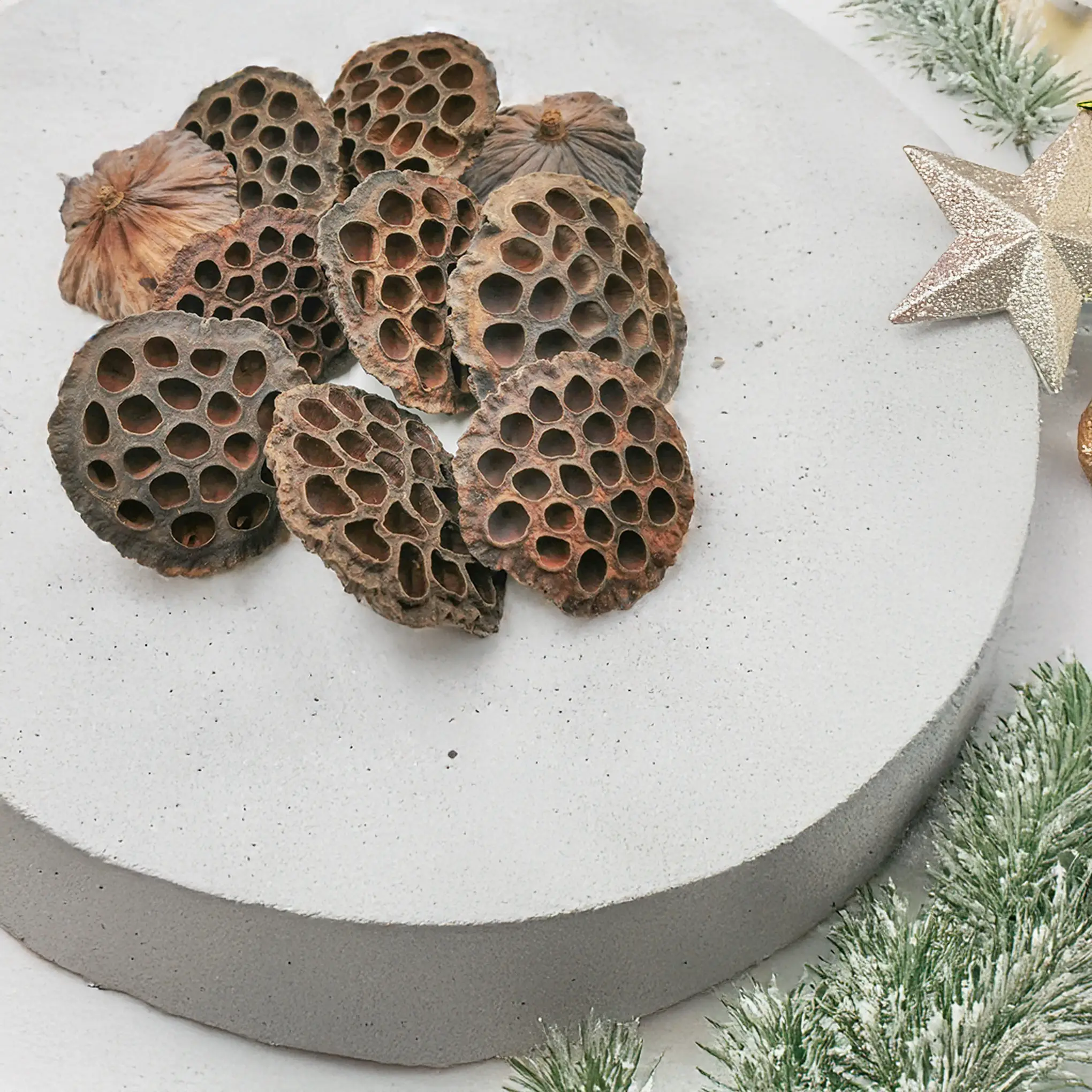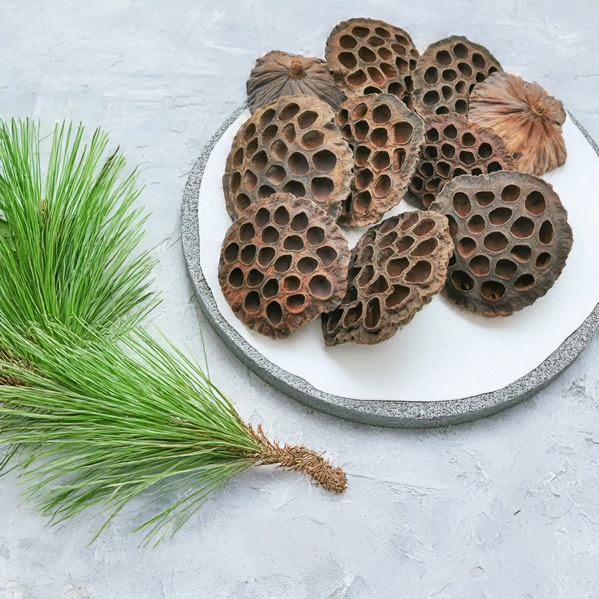 Lotus seed pods harmonize well with various decorative styles, from exotic to minimalist to eclectic. Their natural color brings tranquility and delicacy to interiors, creating a pleasant and distinctive ambiance.