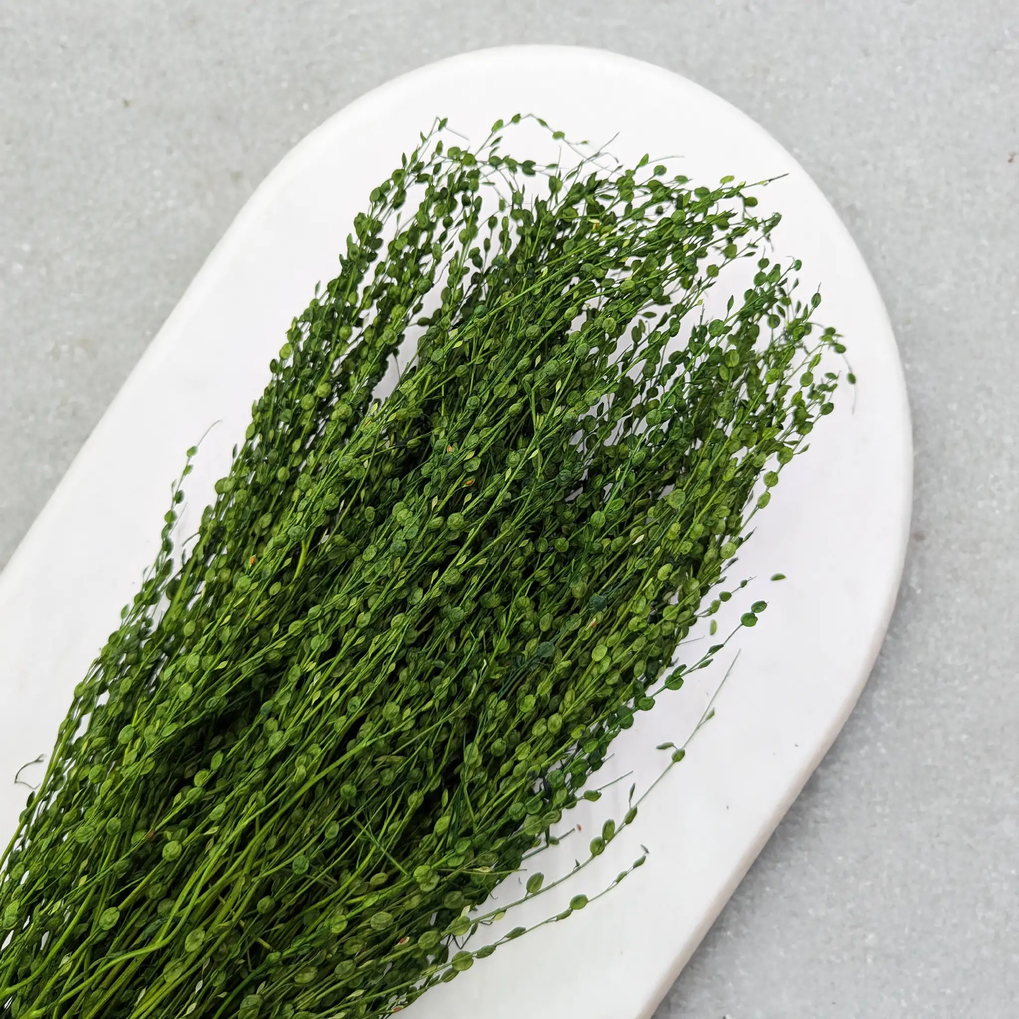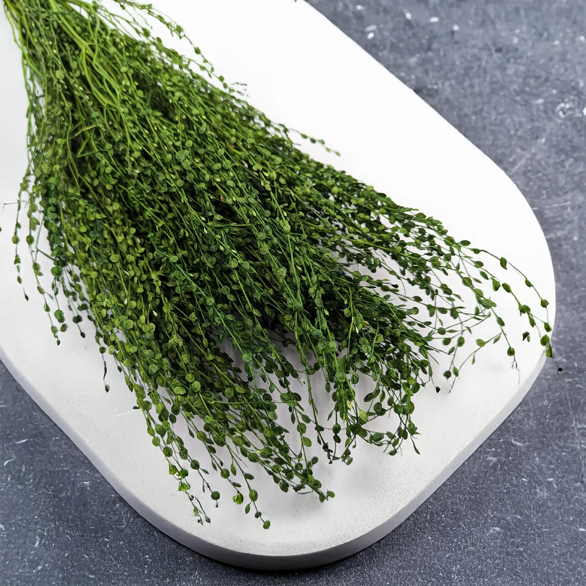 Lepidium sativum in a deep bottle green shade is a refined and decorative botanical accent. Its structured appearance and bold color elevate any arrangement with elegance and a natural vibe.