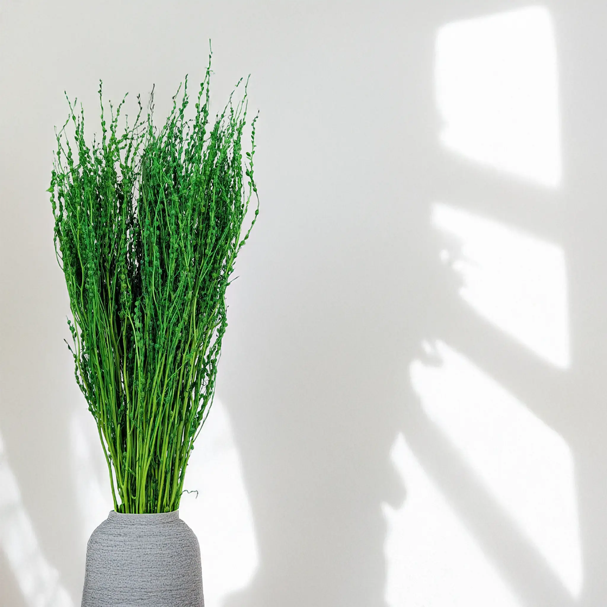 Green dried Lepidium brings a fresh and vivid accent to floral compositions. Its bold color and natural appearance make it a sought-after material for modern, rustic, or natural-themed arrangements.