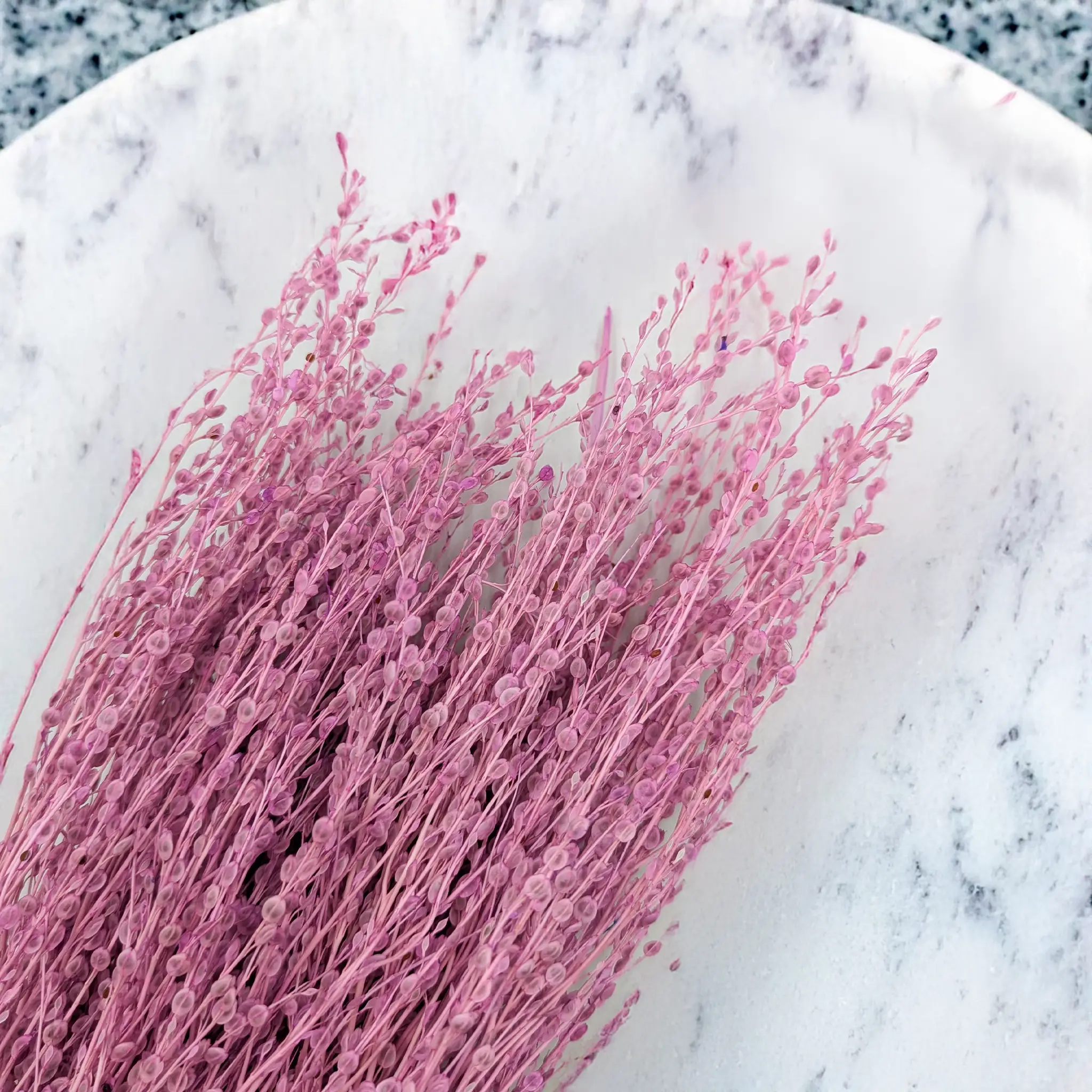 Heather-colored dried Lepidium is a unique decorative plant, perfect for bouquets, table decor, wreaths, and craft projects. Its elegant purple hue adds softness and style to floral compositions and DIY arrangements.