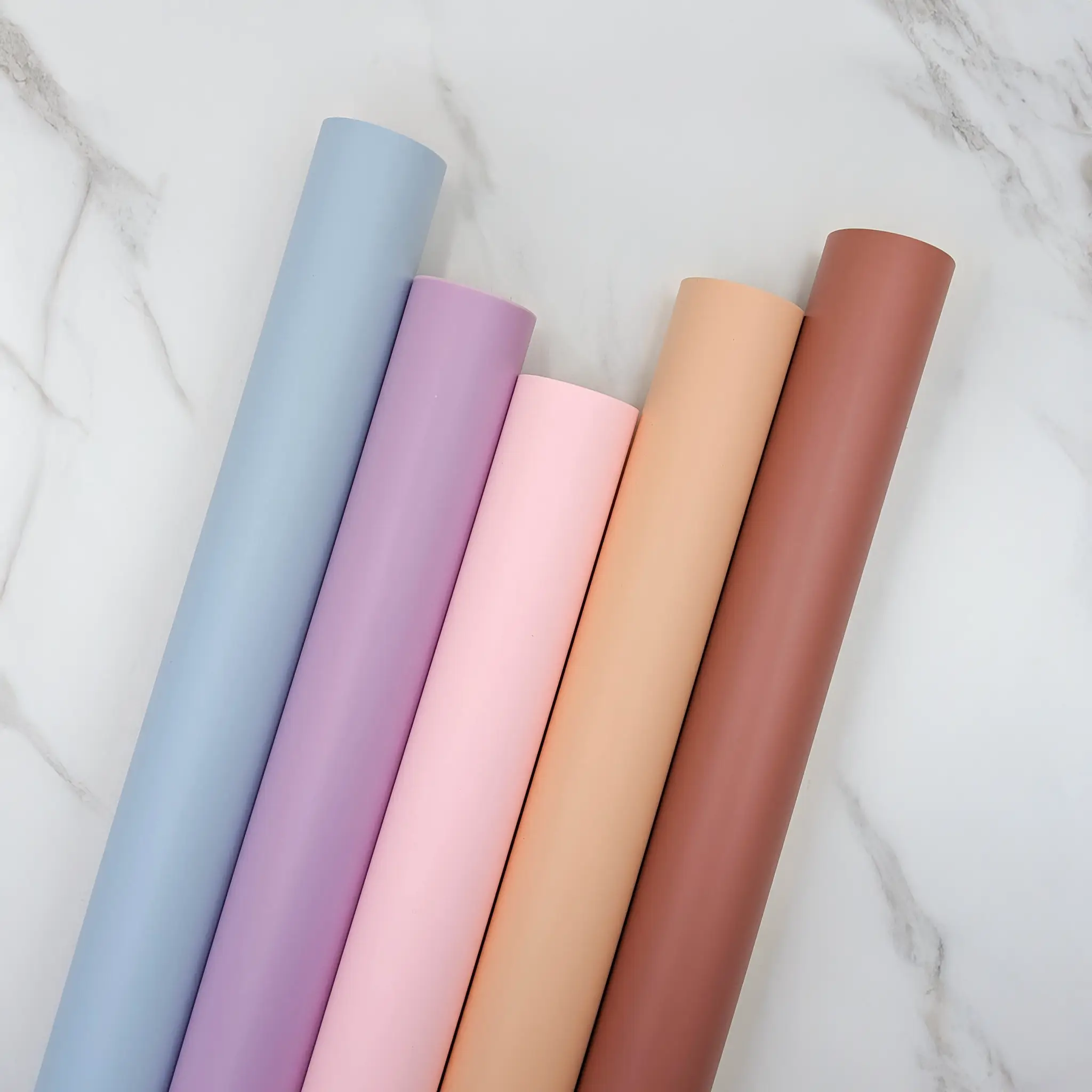 The color series "Matte 90's" is inspired by the fashionable, strong, and pastel colors of the 90s, making the film an ideal choice for those seeking retro inspiration. With a variety of colors, every florist can create arrangements tailored to a specific style or occasion.