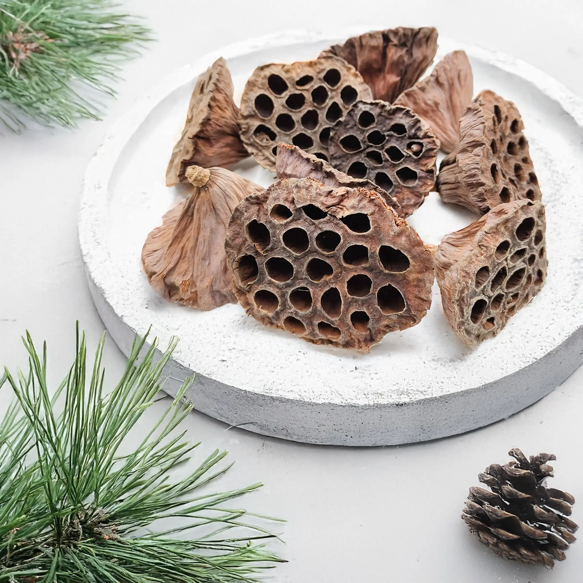 Medium Lotus M (Natural) is a set of 10 exotic dried lotus flowers that serve as a beautiful and unique decoration. Each of these dried flowers retains its natural charm, adding a distinctive and exotic accent to any arrangement.