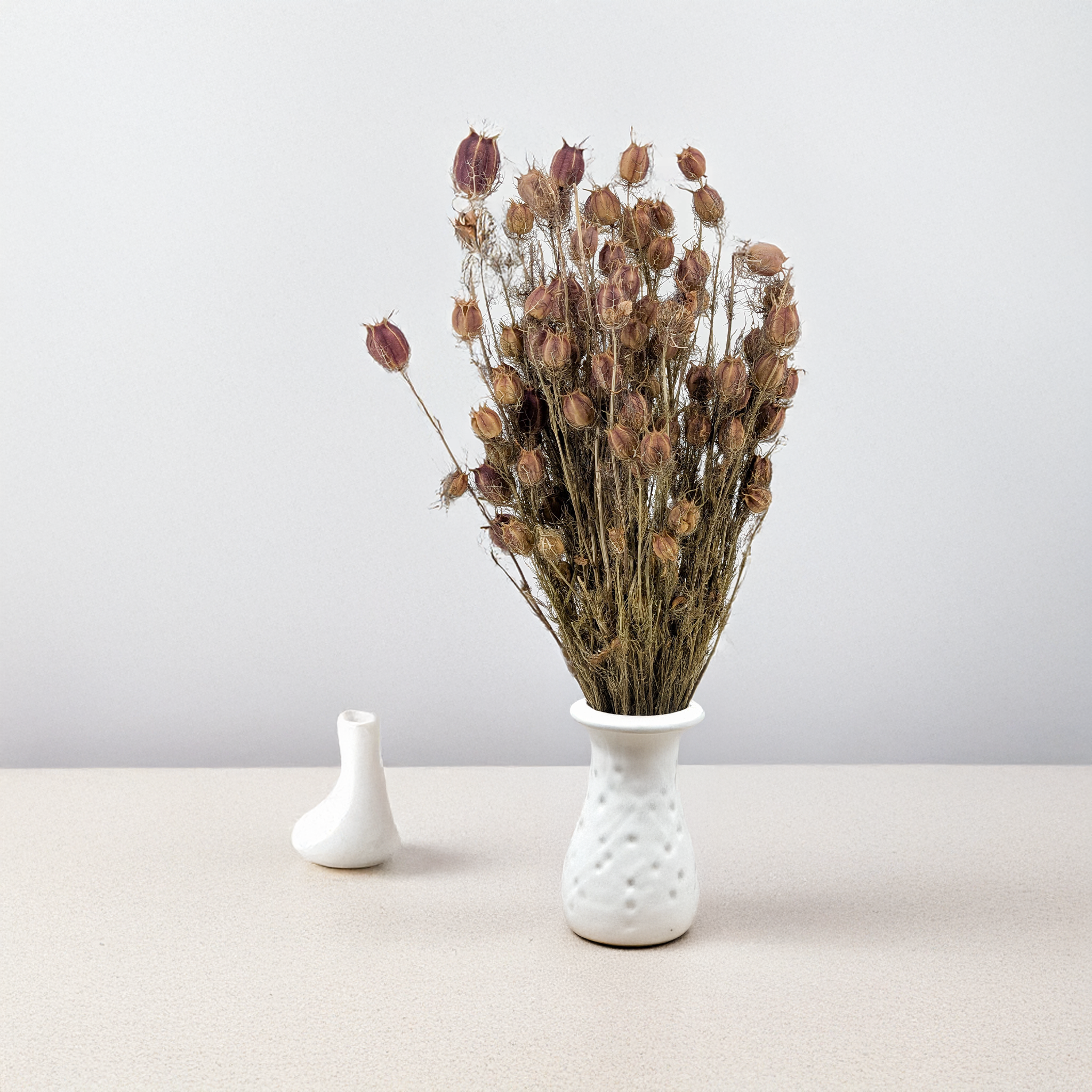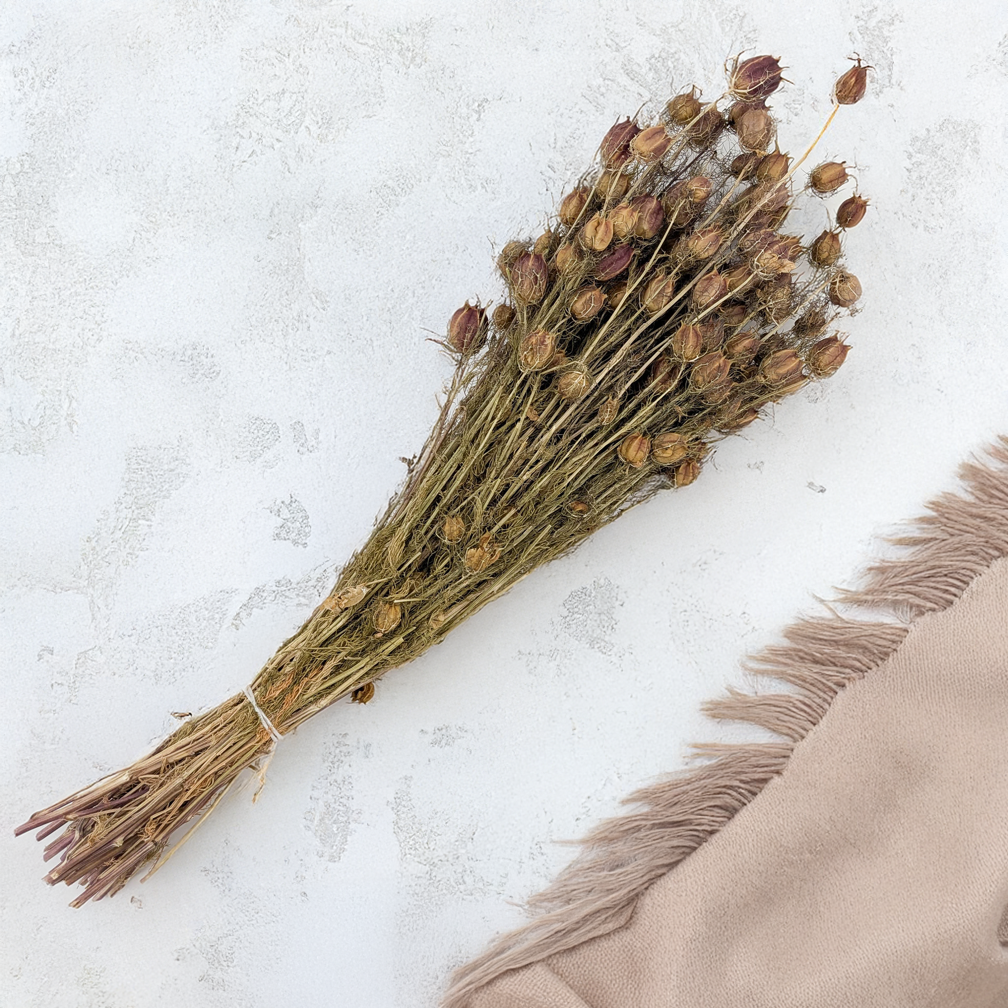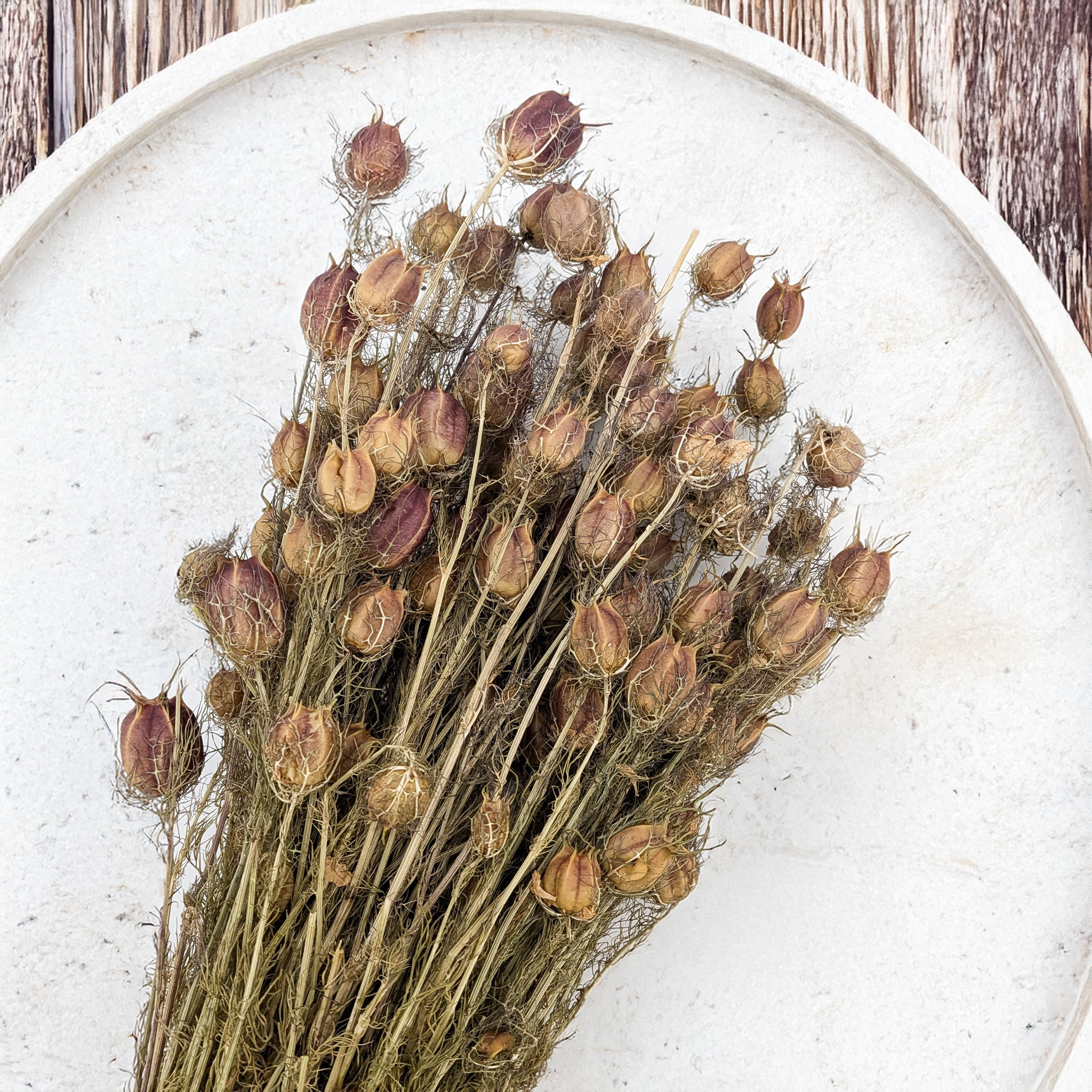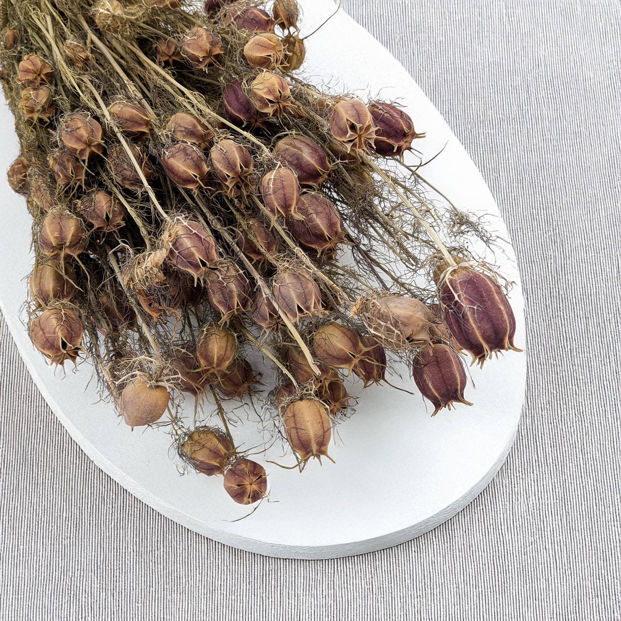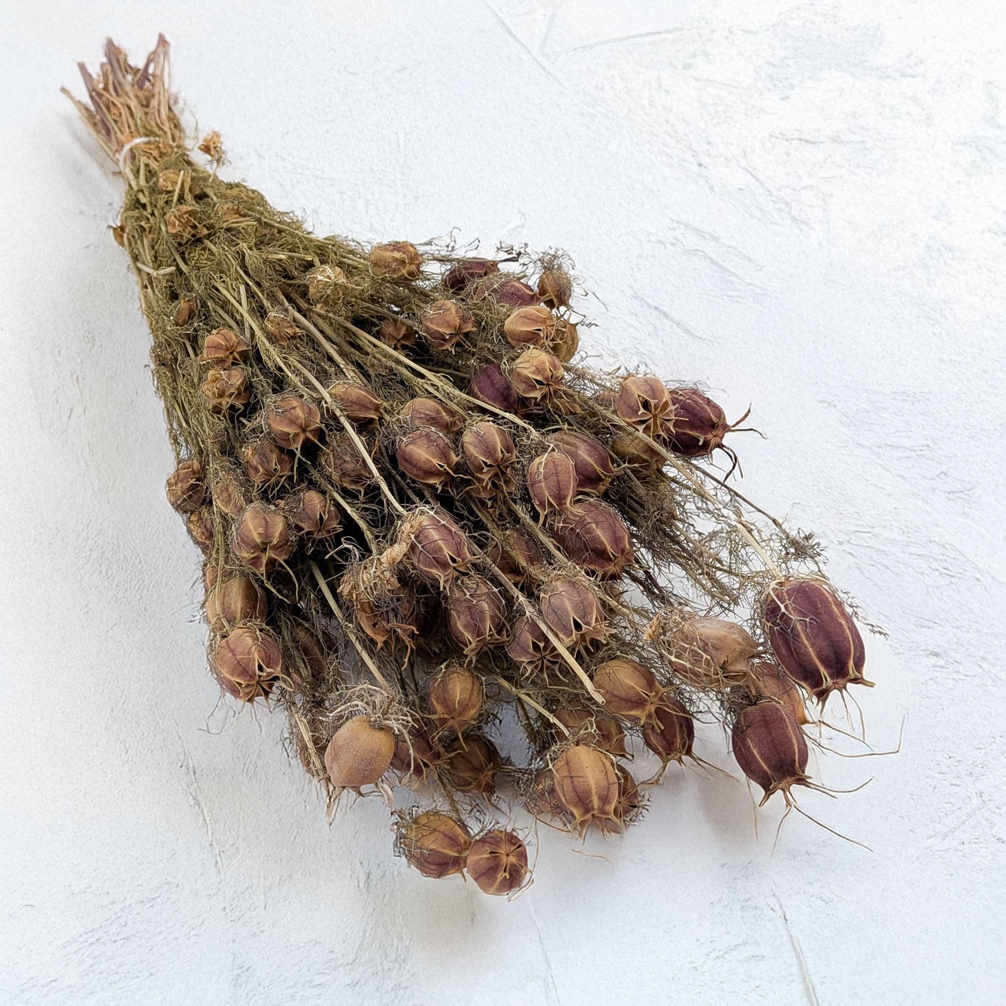 Dried nigella flower with beautiful large red-burgundy dyed seed pods. Perfect for dried floral compositions, natural bouquets, and rustic or boho interior decor.