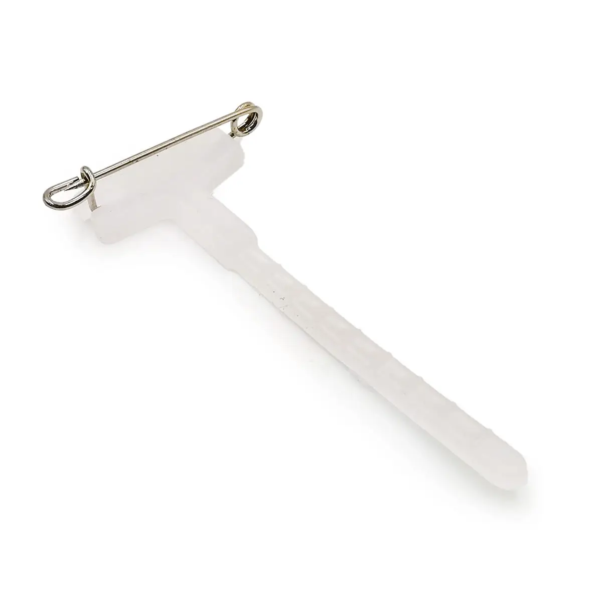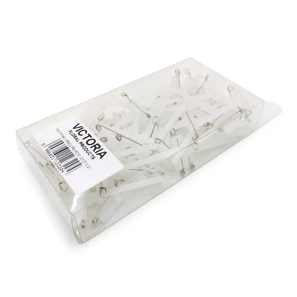 This white pin is designed in a way that allows flowers, leaves, or other decorations to be attached to it, forming a boutonniere. With this floral accessory, a florist can easily and securely hold the composed elements, creating beautiful and durable floral boutonnieres.