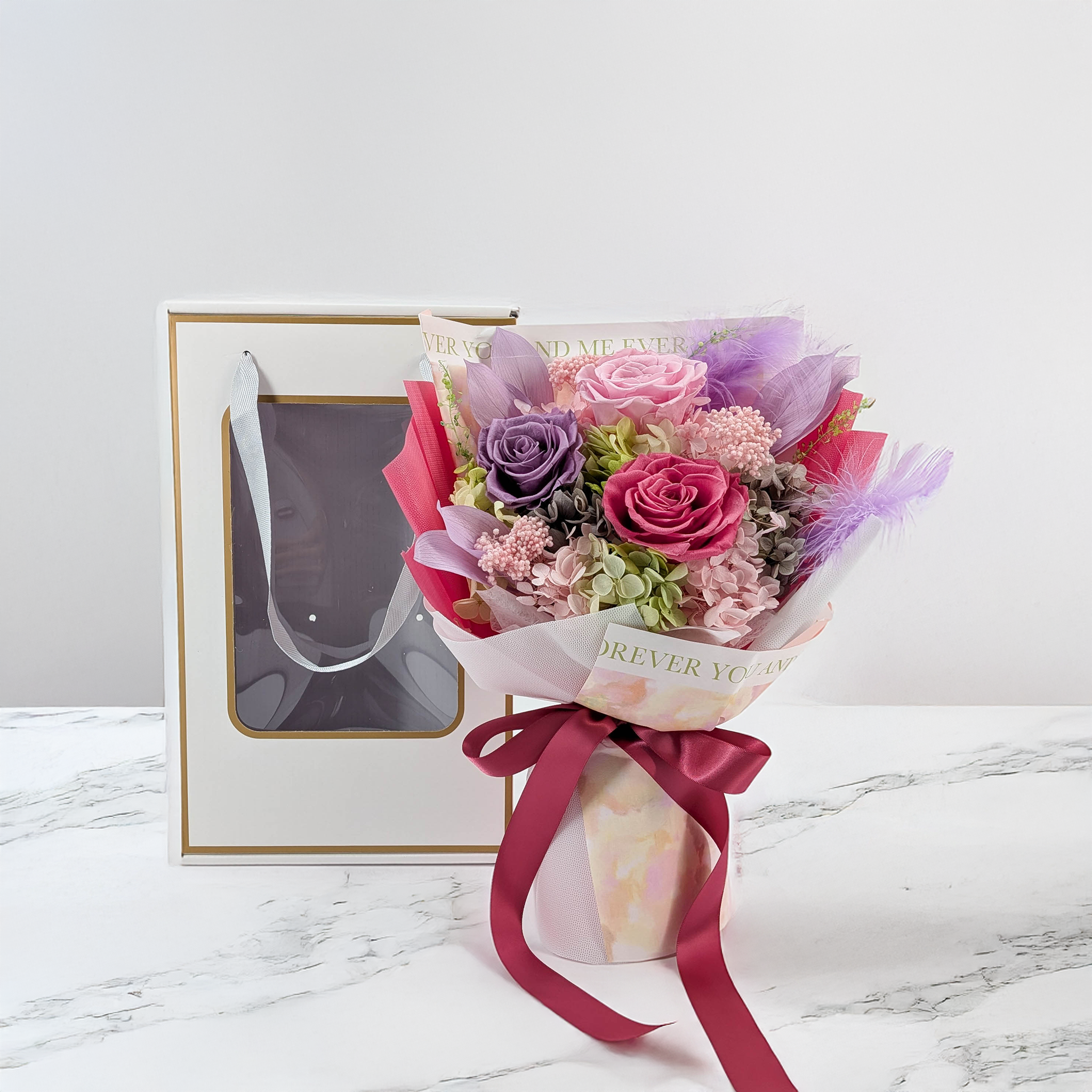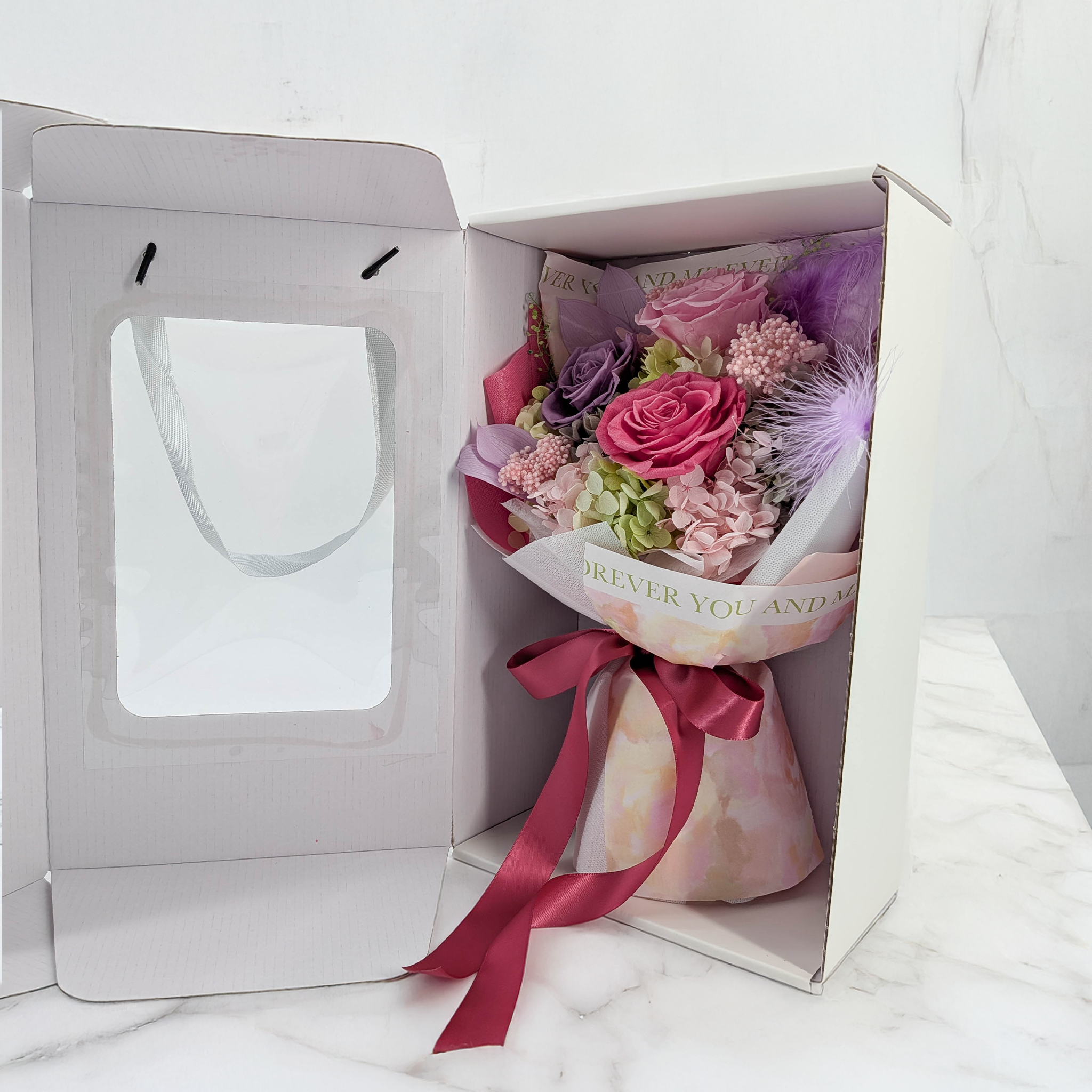 Premium Flower Bouquet in Box – EVERGIVE – A Lasting Gesture – Candy Blush
