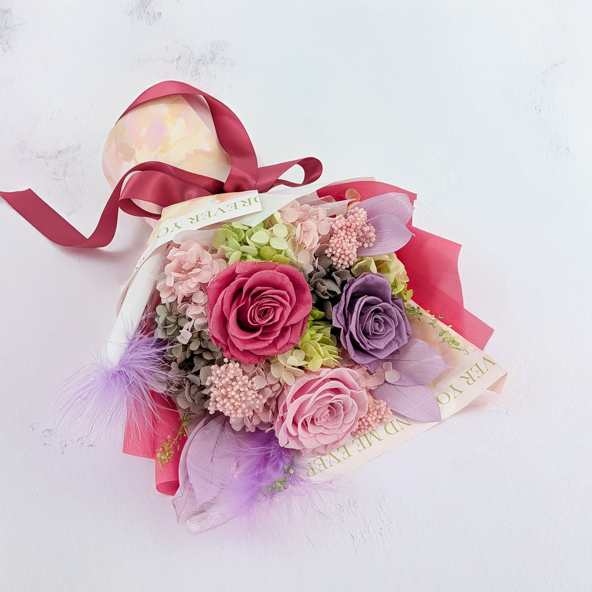 EVERGIVE – A Lasting Gesture is a premium composition combining the beauty of fresh flowers with the durability of preserved plants.