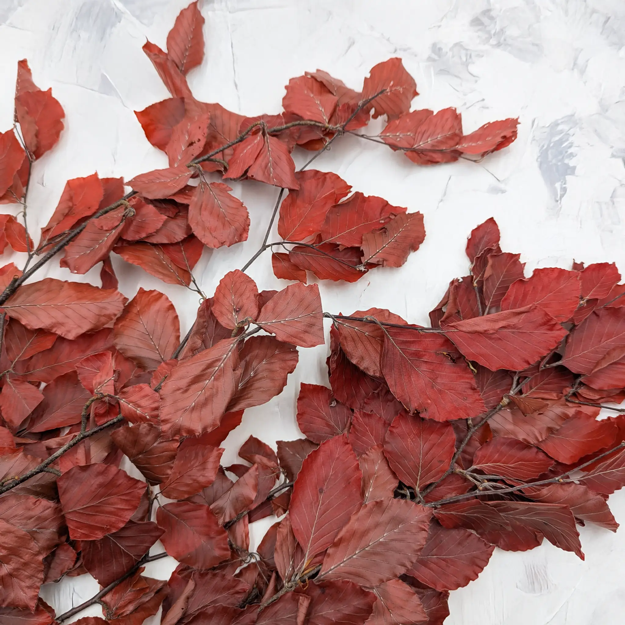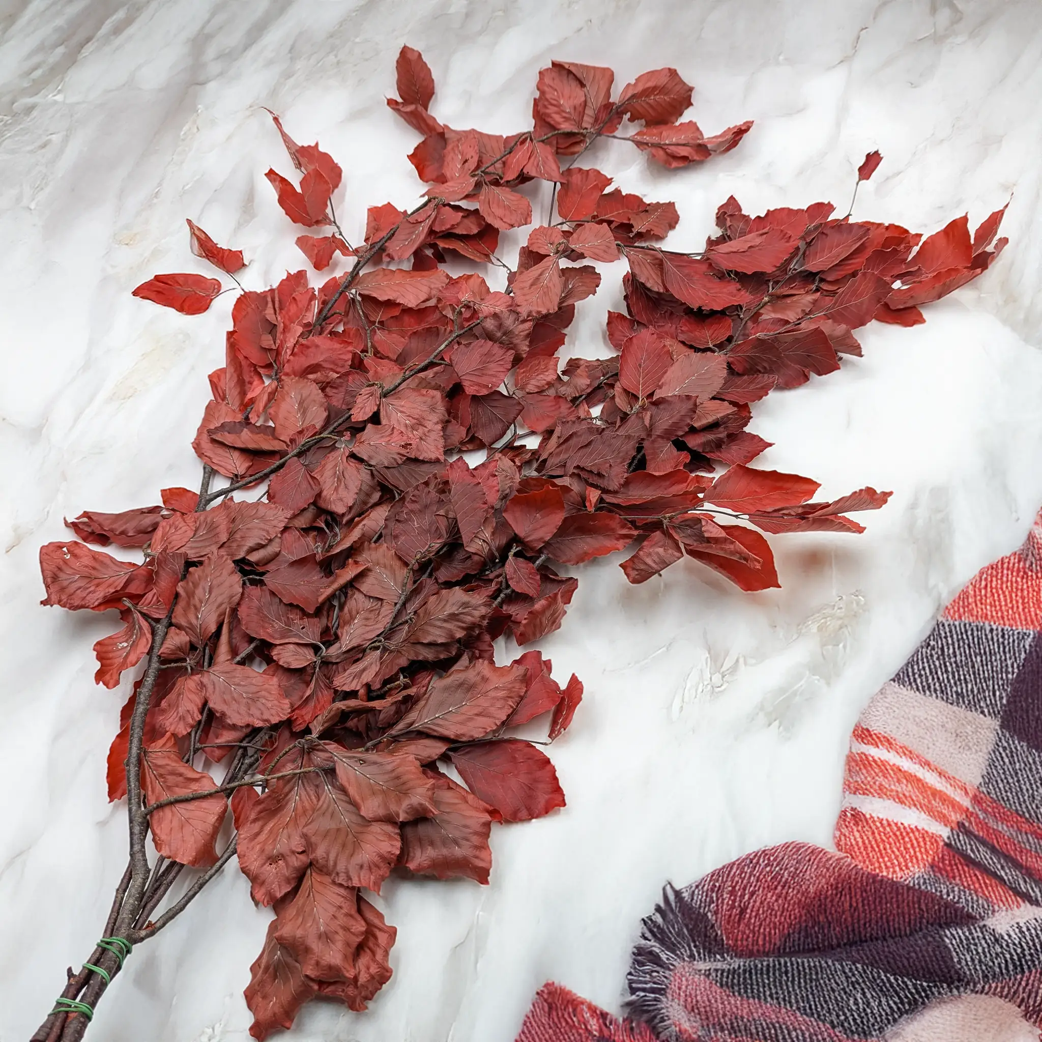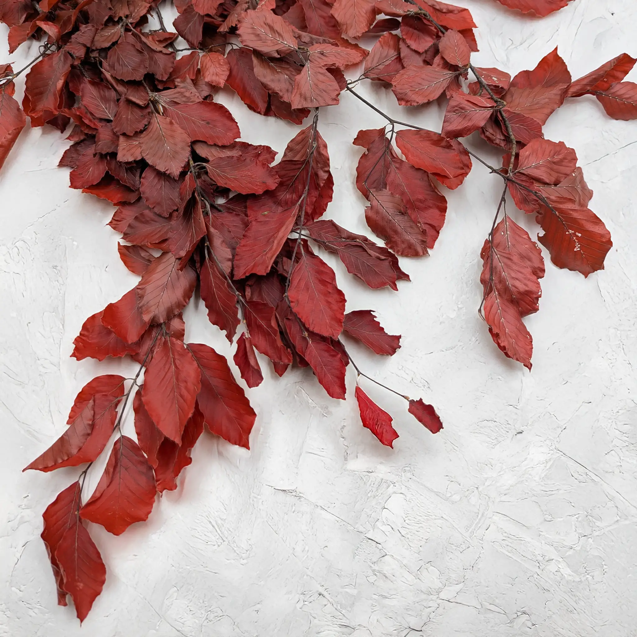 Red preserved beech pairs beautifully with beige, brown, and natural greenery. It brings a subtle warmth to arrangements, adding a touch of refined nature to every space.