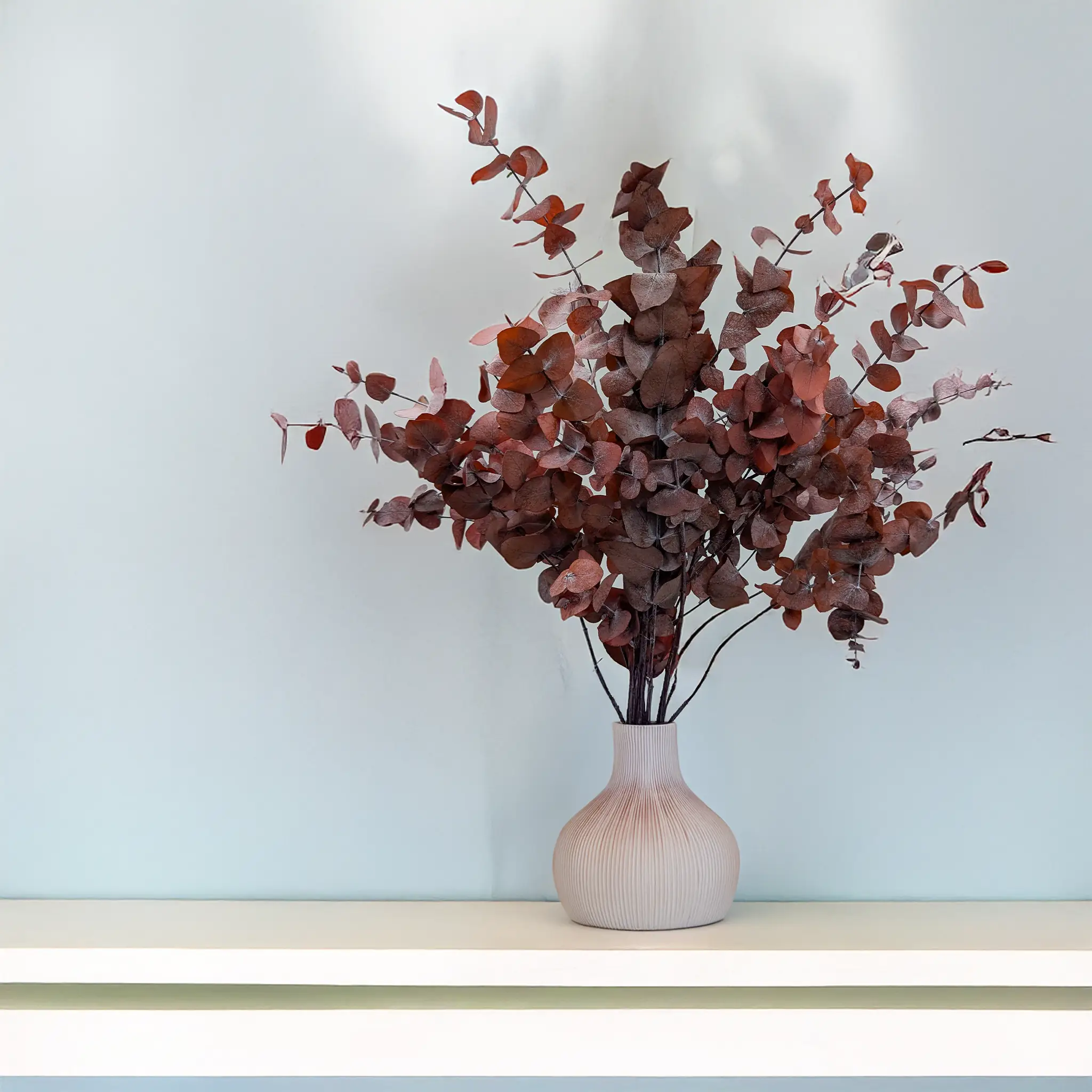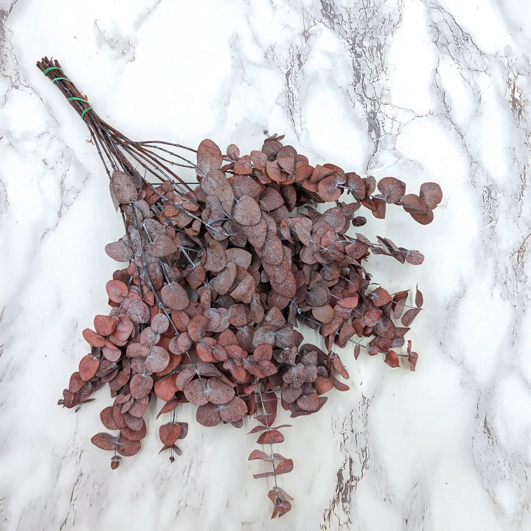 Preserved red eucalyptus Cinerea is a striking and elegant addition to floral arrangements. With its rounded leaves and soft shape, it looks beautiful in classic bouquets and modern DIY projects alike. Perfect for holiday decor, glamorous styling, romantic bouquets, and seasonal event design.