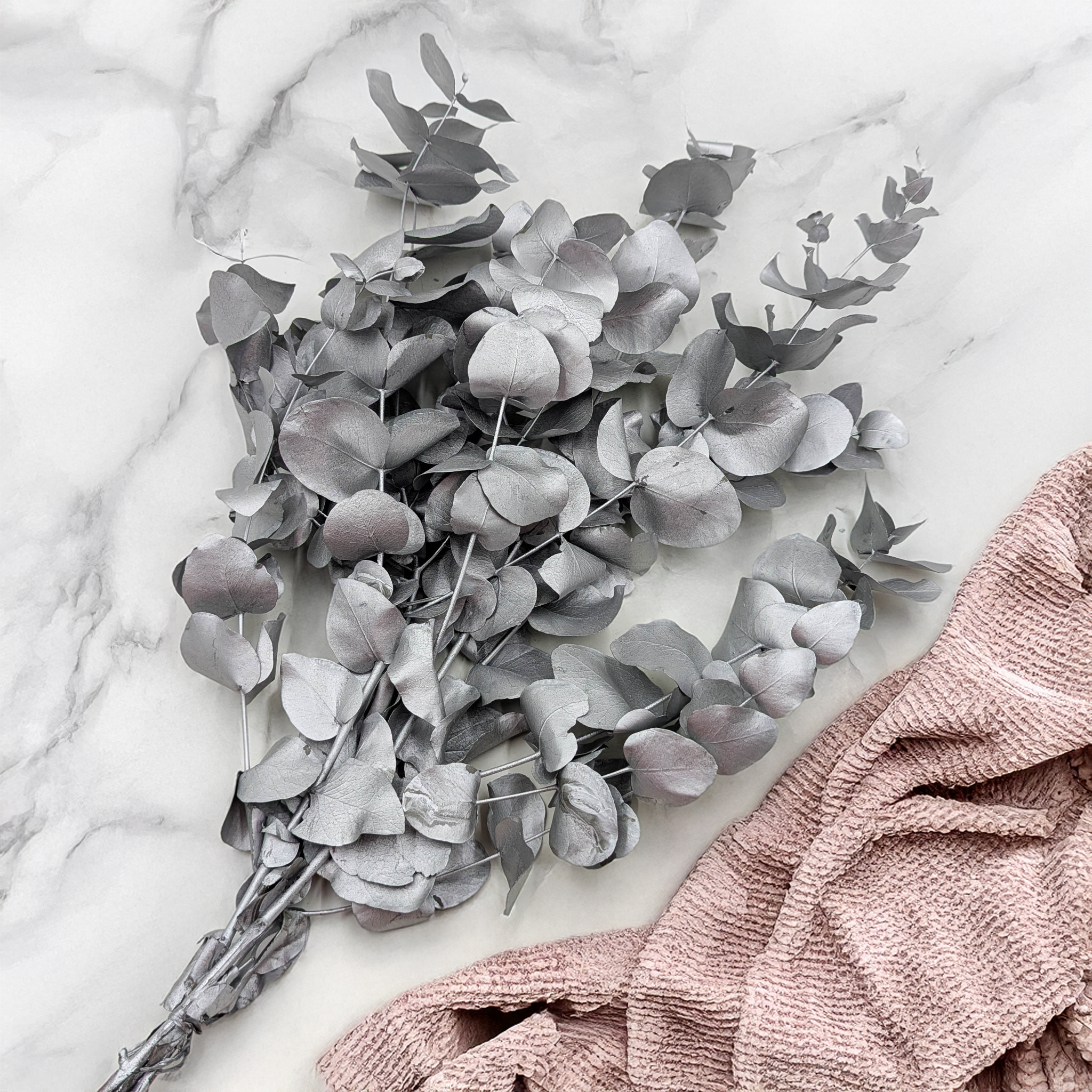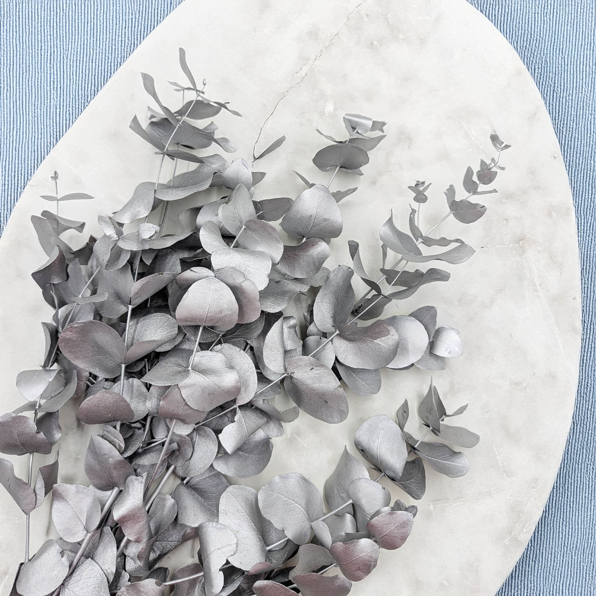Preserved Eucalyptus Cinerea in silver color is an elegant, modern, and highly versatile decorative material. Its cool, metallic tone perfectly complements interiors in glamour, modern, Japandi, or Scandinavian styles. Ideal for creating wedding compositions, bouquets, wreaths, and floral arrangements that stand out with subtle shine and sophistication.