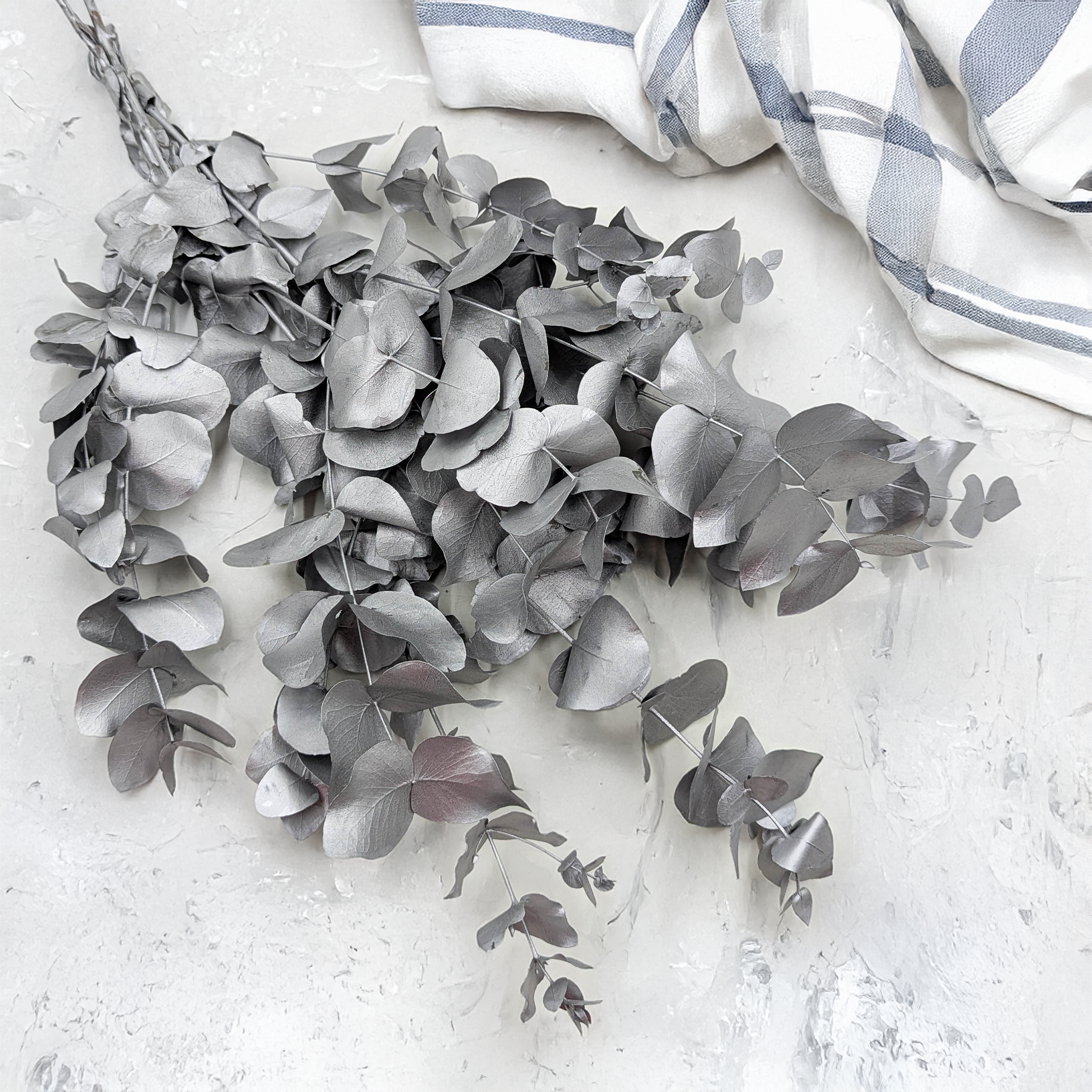 Silver eucalyptus Cinerea pairs beautifully with bleached lunaria, cream gypsophila, pampas grass, and dried protea. It works perfectly as a backdrop for bright flowers or as a standalone element in minimalist decor. An ideal choice for Christmas wreaths, winter bouquets, and elegant table arrangements.