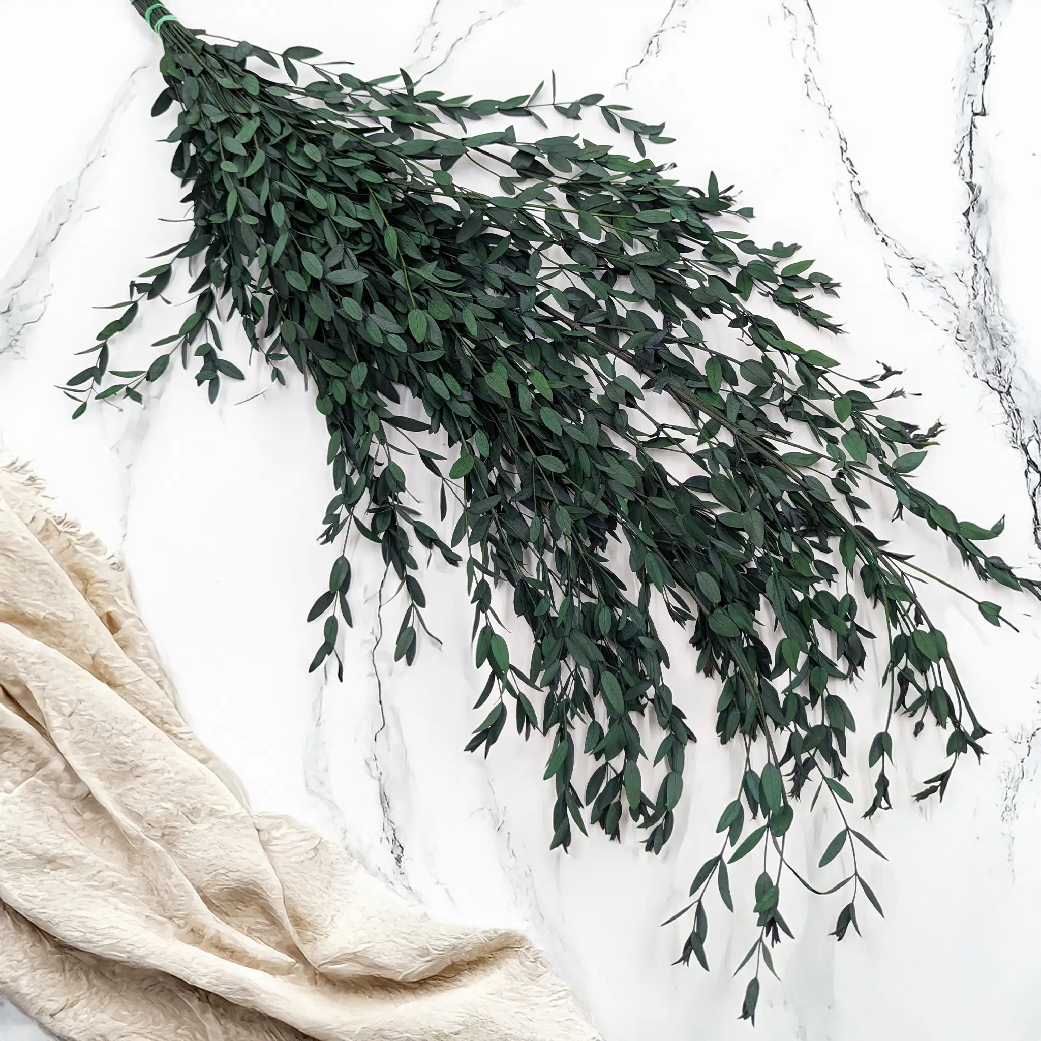 Preserved eucalyptus Parvifolia in green features slender, elongated leaves that create a light and elegant effect. Thanks to preservation, it stays fresh and flexible for months without any maintenance. Perfect for wedding floristry, table décor, garlands and natural interior arrangements.