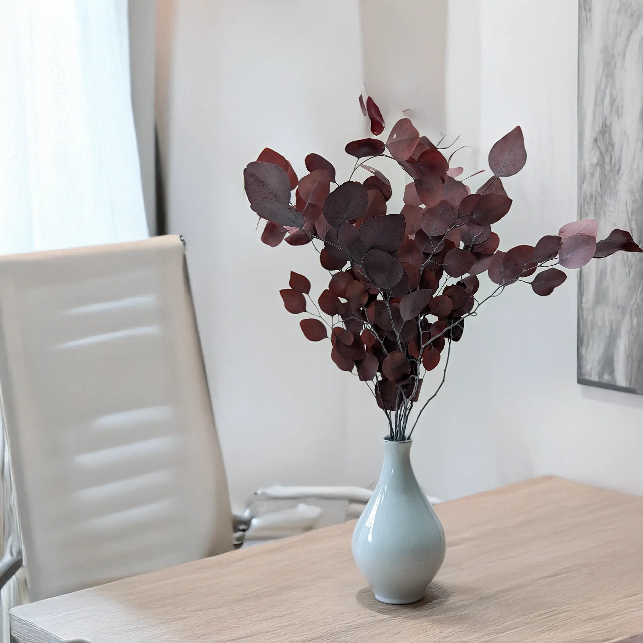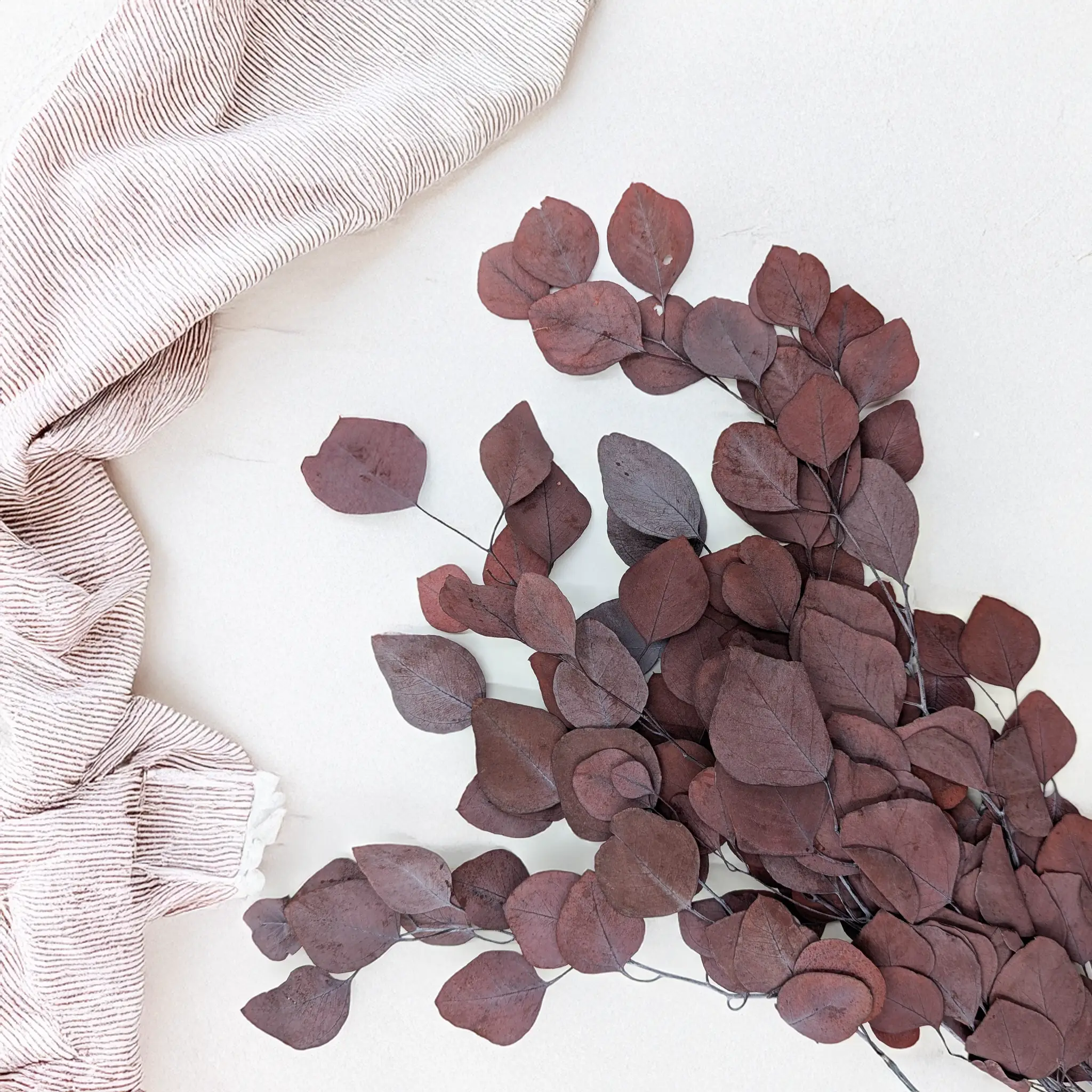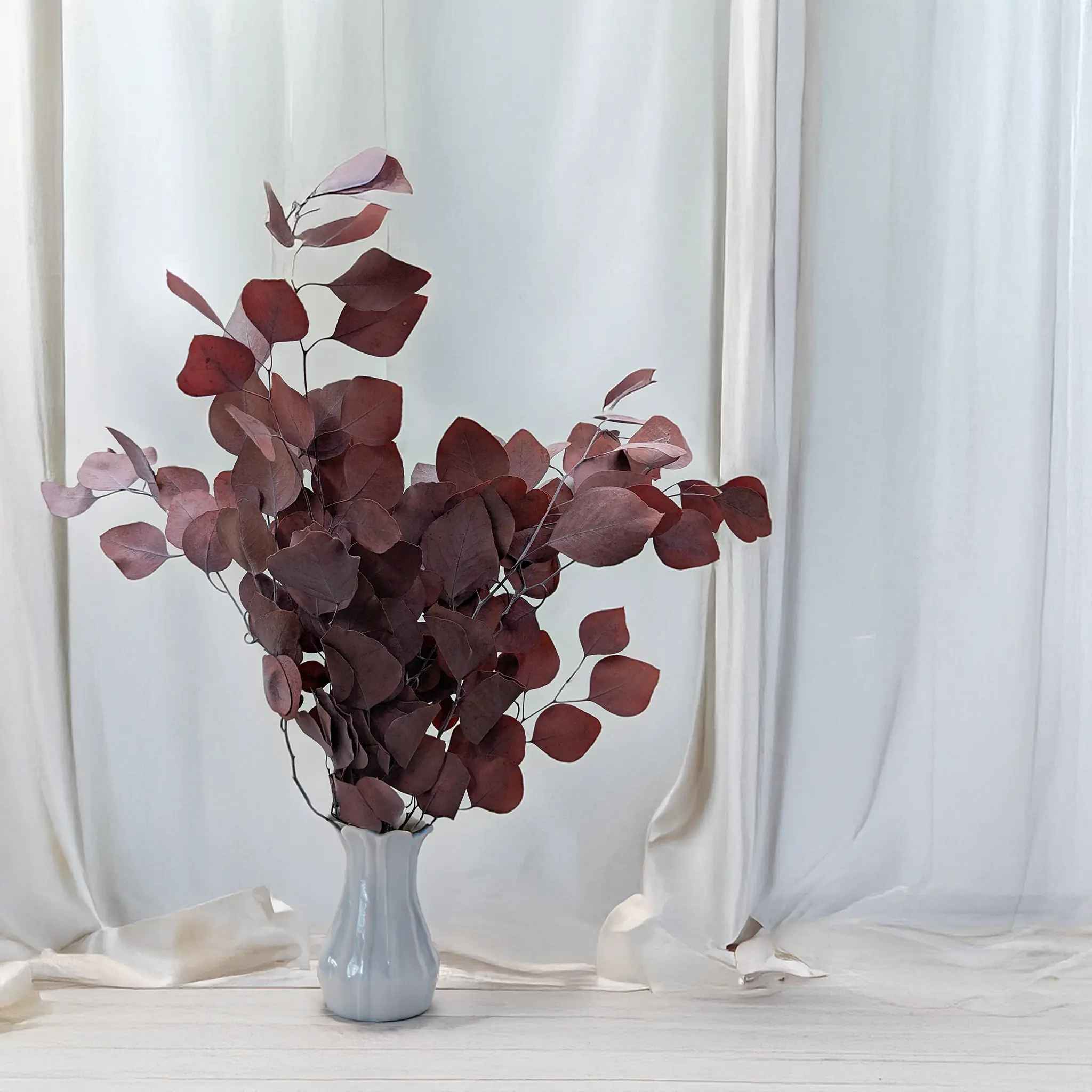 Preserved red Populus eucalyptus adds a bold and expressive touch to floral arrangements. Its broad, rounded leaves and natural branching structure make it perfect for holiday bouquets, wedding florals, and seasonal designs. Ideal for DIY projects, wreaths, event decorations, and modern or romantic interiors.