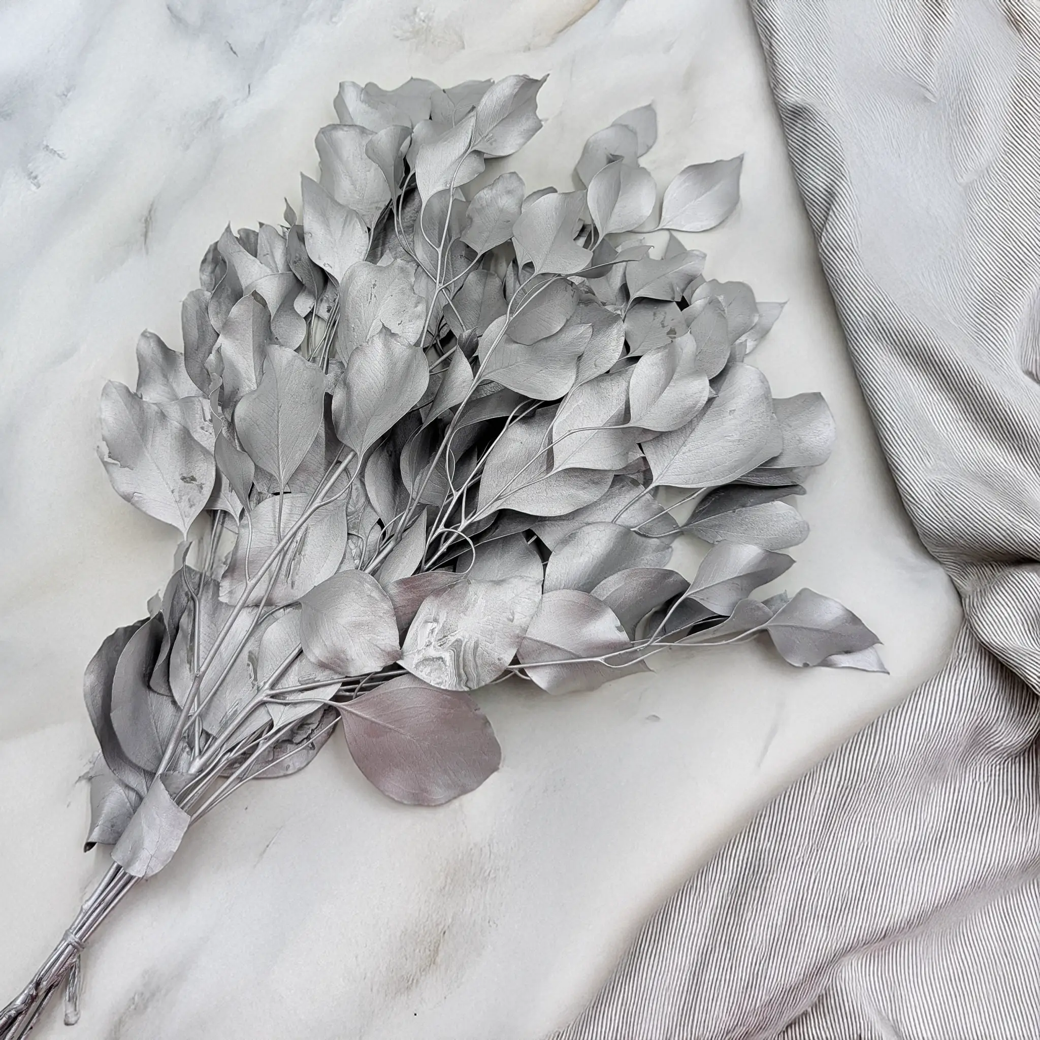 Preserved Eucalyptus Populus in silver is a refined decorative element for modern, winter, and festive arrangements. Its broad, rounded leaves with a metallic sheen bring luxury and depth to any floral design. Perfect for Christmas wreaths, winter bouquets, garlands, and table centerpieces. Matches beautifully with Japandi, glamour, and Scandinavian interiors. Preservation ensures lasting beauty without maintenance.