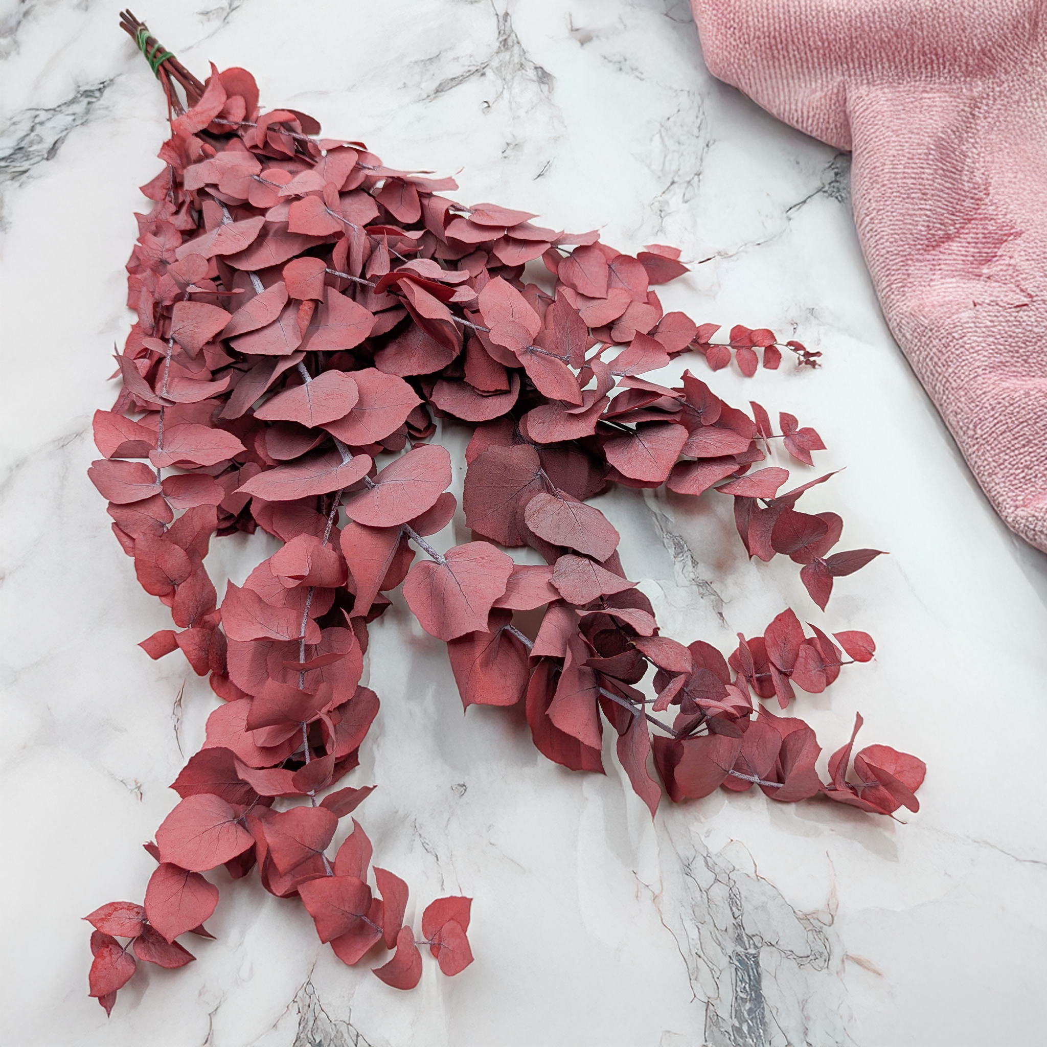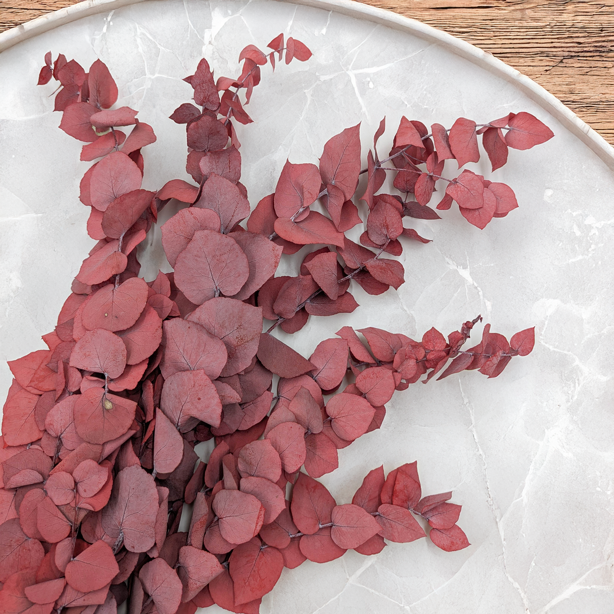 Red Stuartiana eucalyptus is a decorative element that brings a striking touch to floral designs. The preserved leaves keep their natural form and flexibility while requiring no care. Perfect for festive, romantic and modern arrangements.