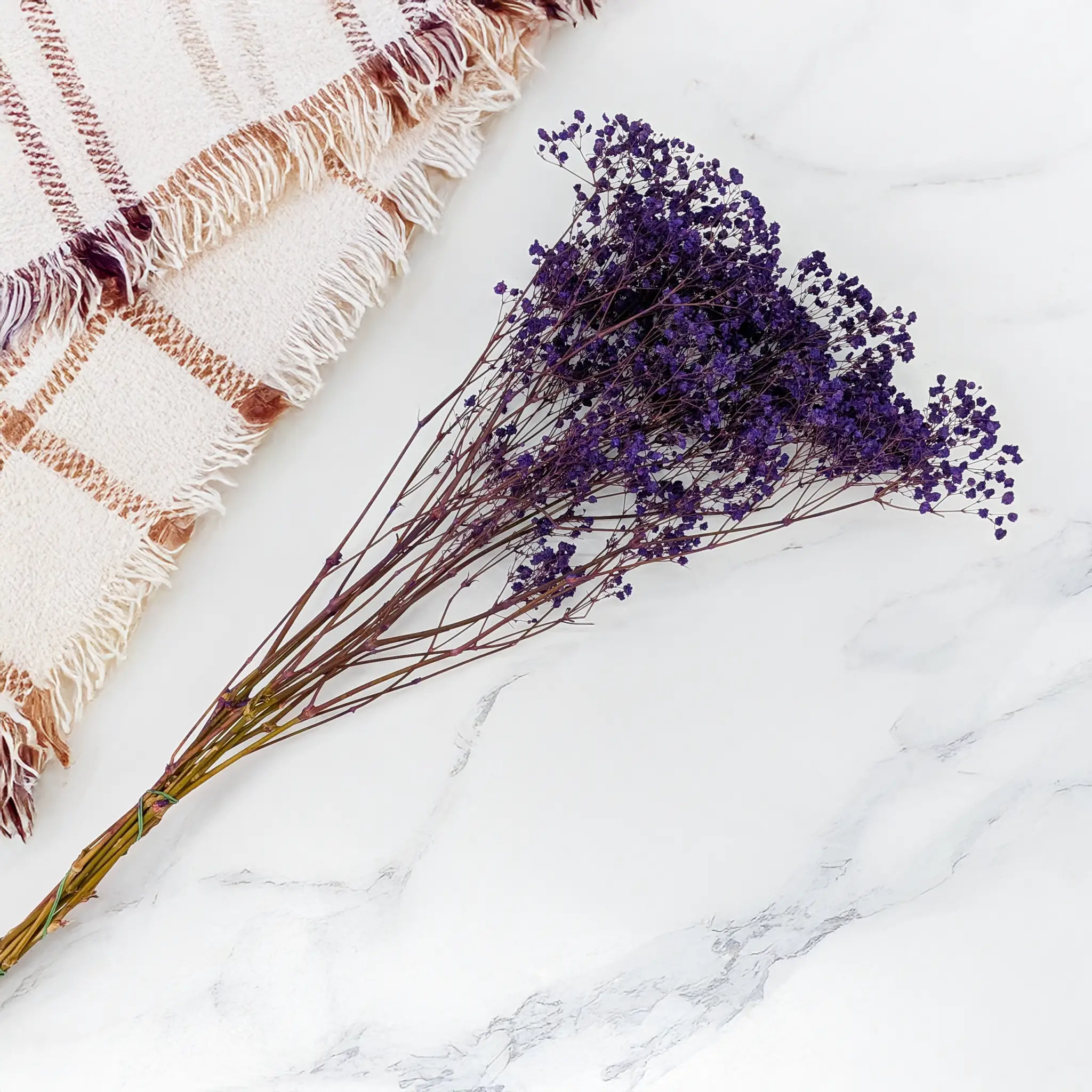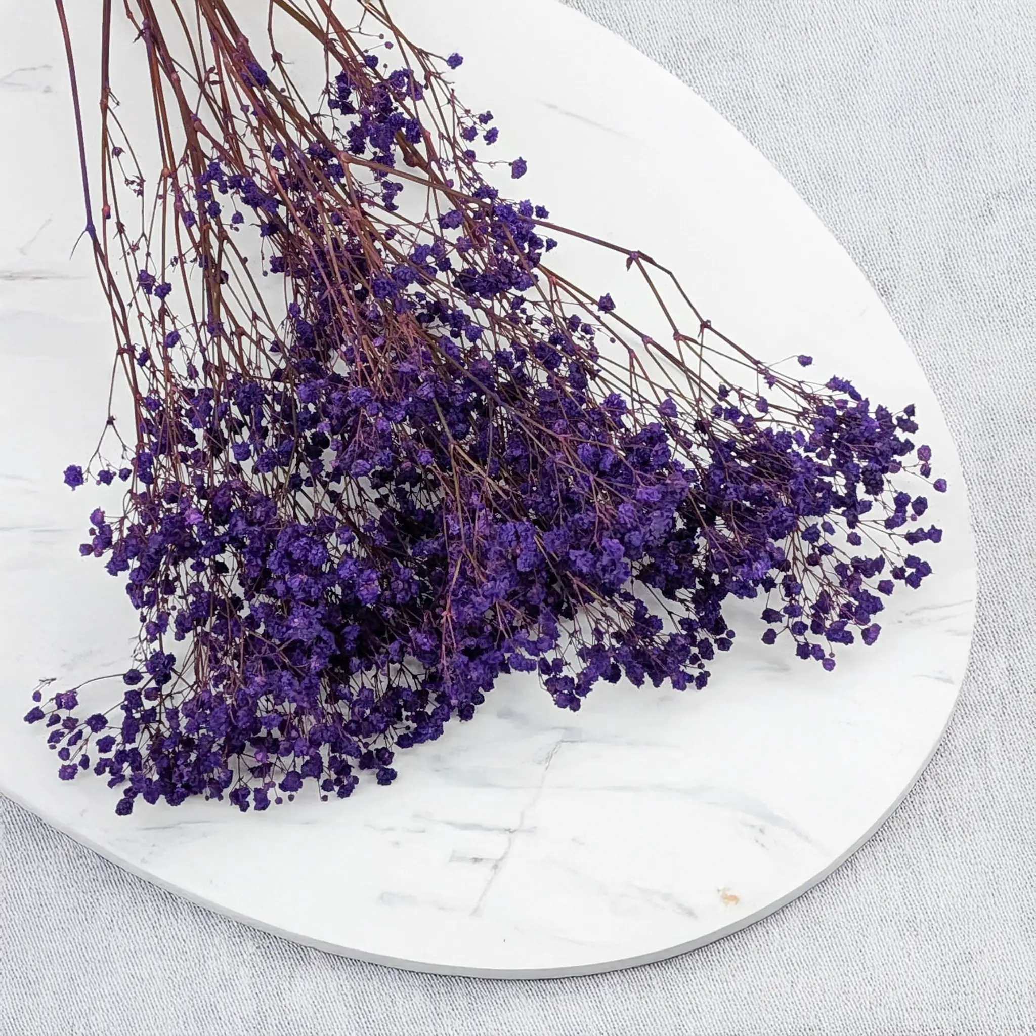 Preserved pastel purple gypsophila offers a gentle touch of color and peace, perfect for modern, romantic or minimalist decor. Ideal for weddings and floral compositions.