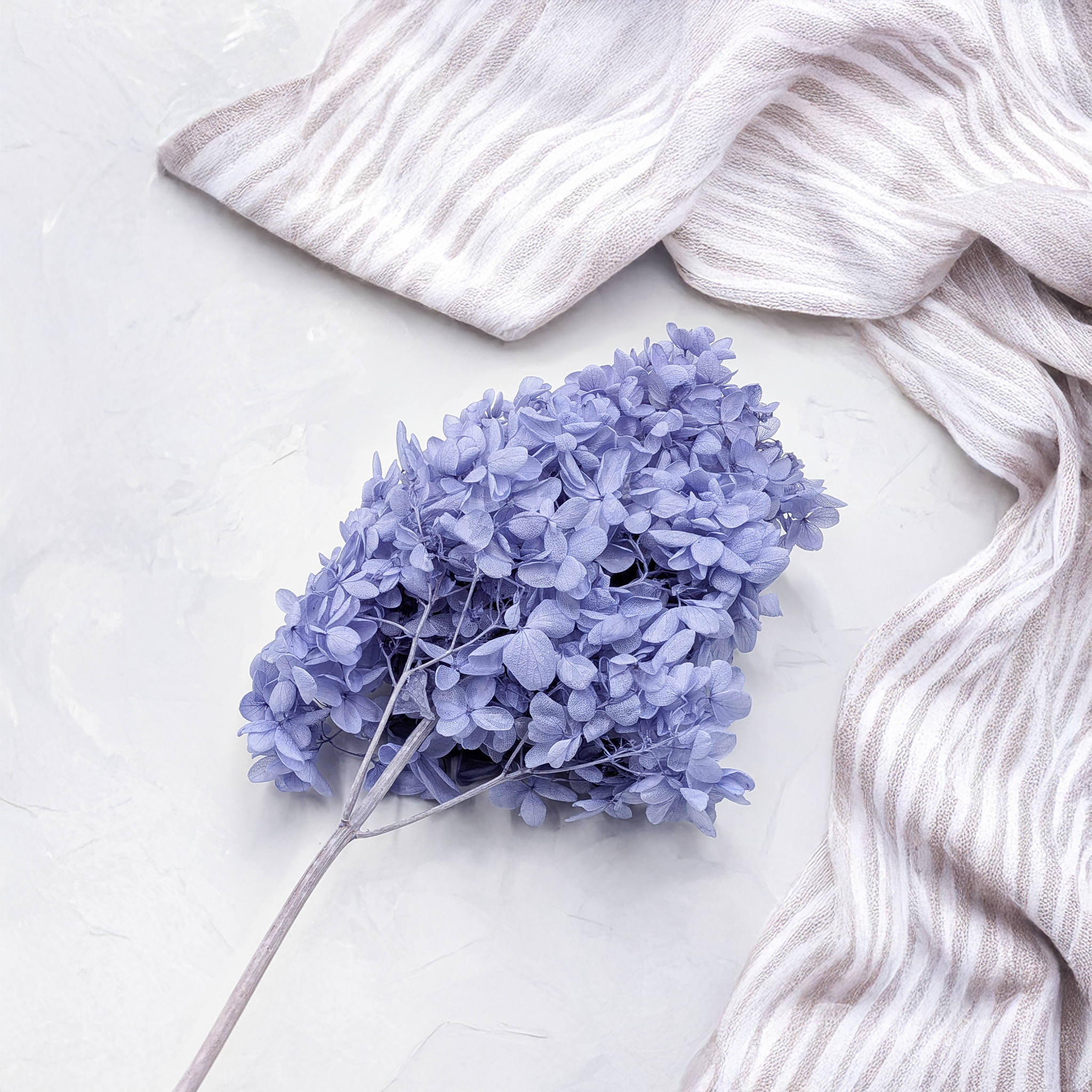 Royal preserved Hydrangea Conical in Lavender captivates with a delicate pastel tone inspired by lavender flowers. This refined color blends a soft blue hue with a subtle touch of violet, creating romantic and stylish floral arrangements.