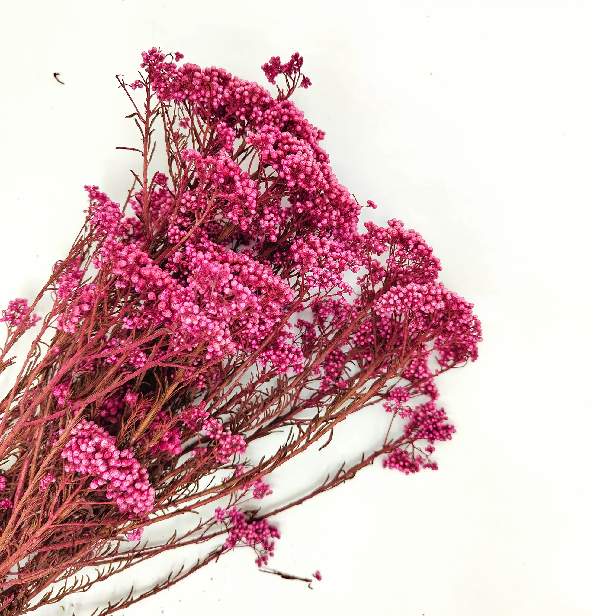 Discover the subtle beauty of Ozothamnus Diosmi in a pink shade. This unique dried plant is characterized by small, dense flower heads that create a fluffy, delicate effect. The pink color gives it a romantic and gentle character, fitting perfectly into boho, vintage, or rustic style arrangements.