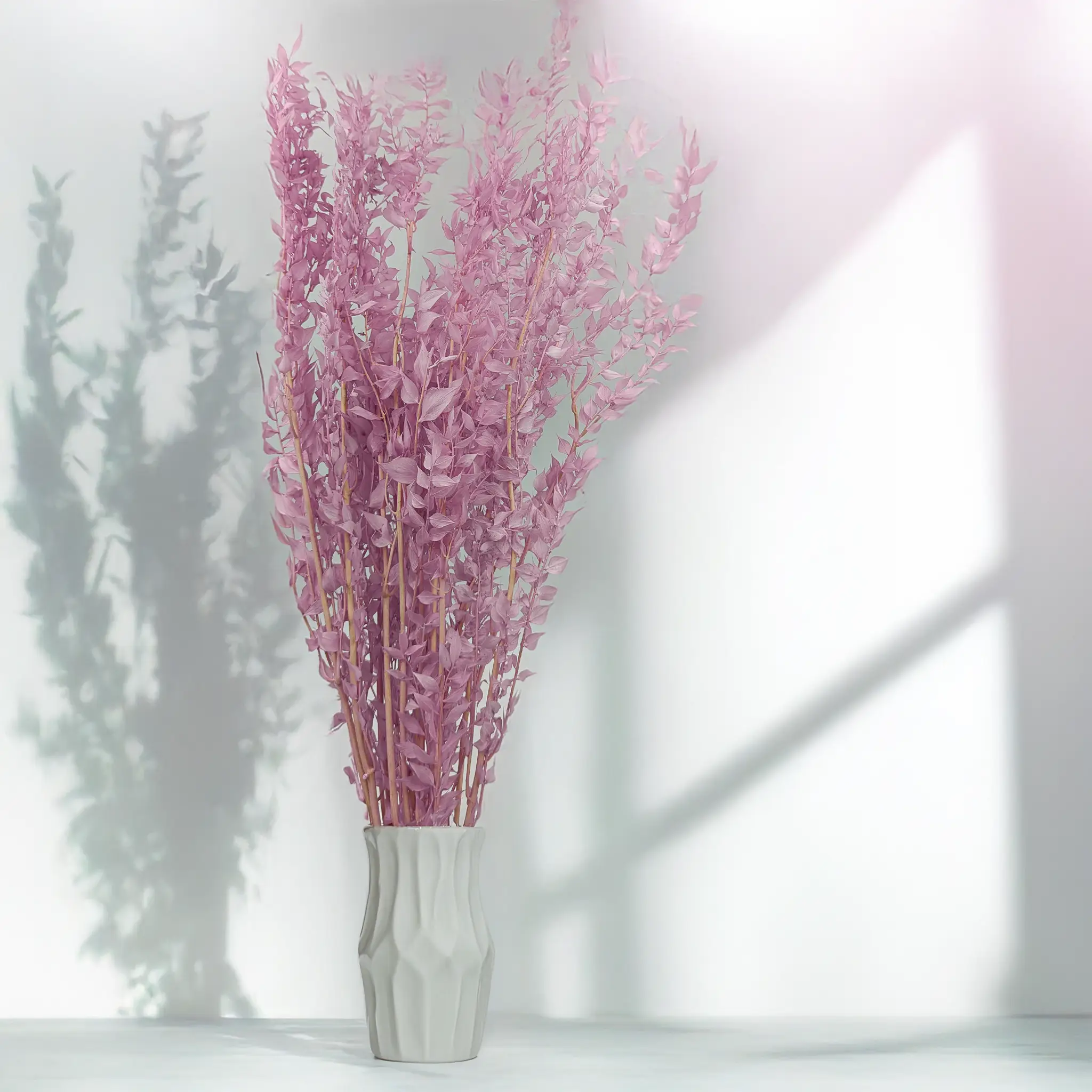 Preserved ruscus in a heather shade is an elegant and timeless decorative accent that brings romance and refined subtlety to any arrangement. Thanks to the preservation process, it retains its fresh look, natural shape, and flexibility for many months without any maintenance. Its shade perfectly complements modern, rustic, and boho-style compositions.