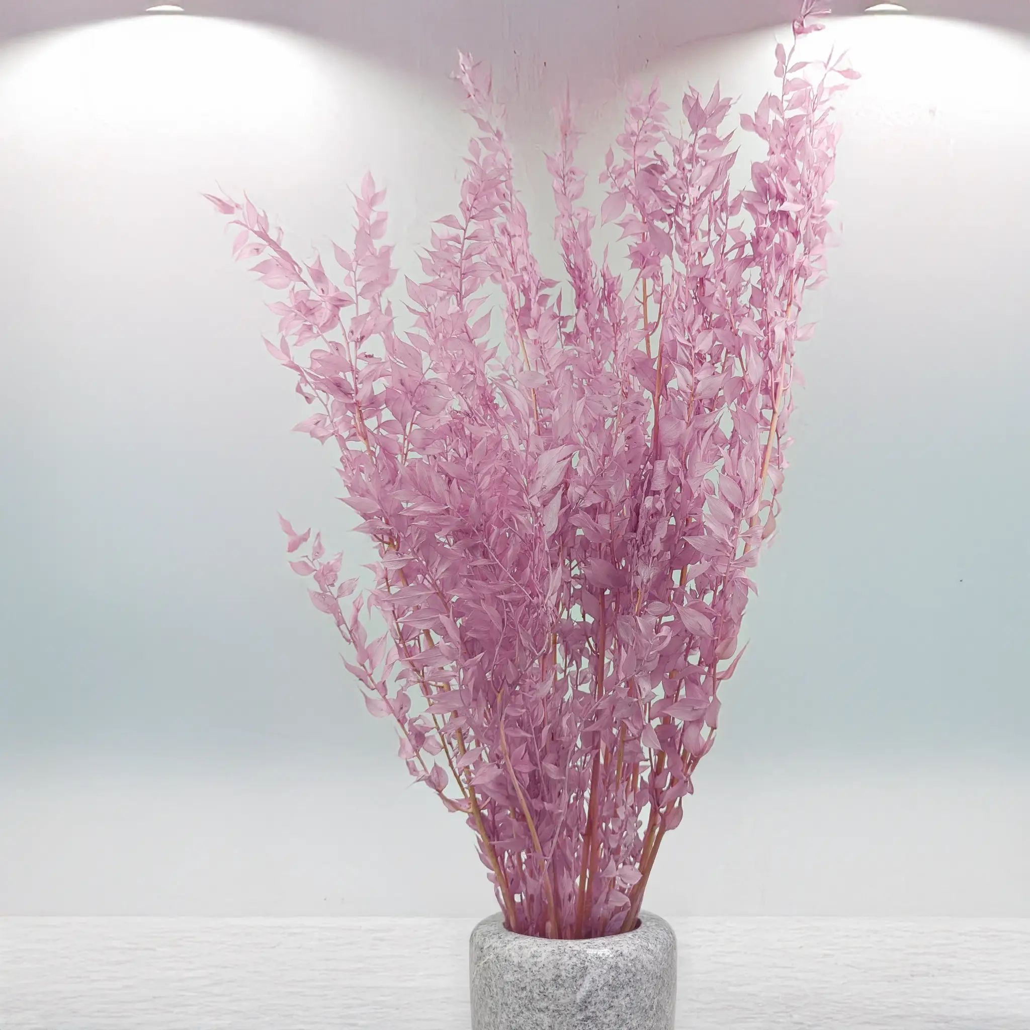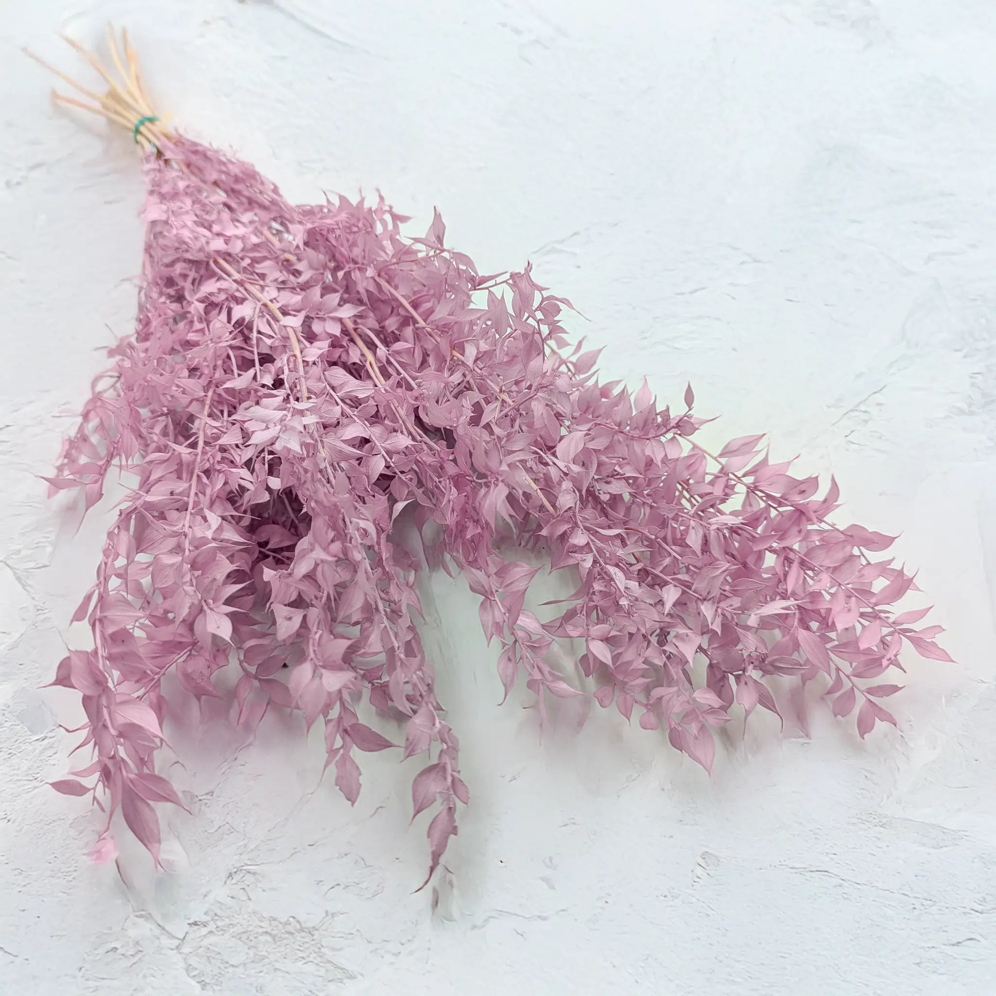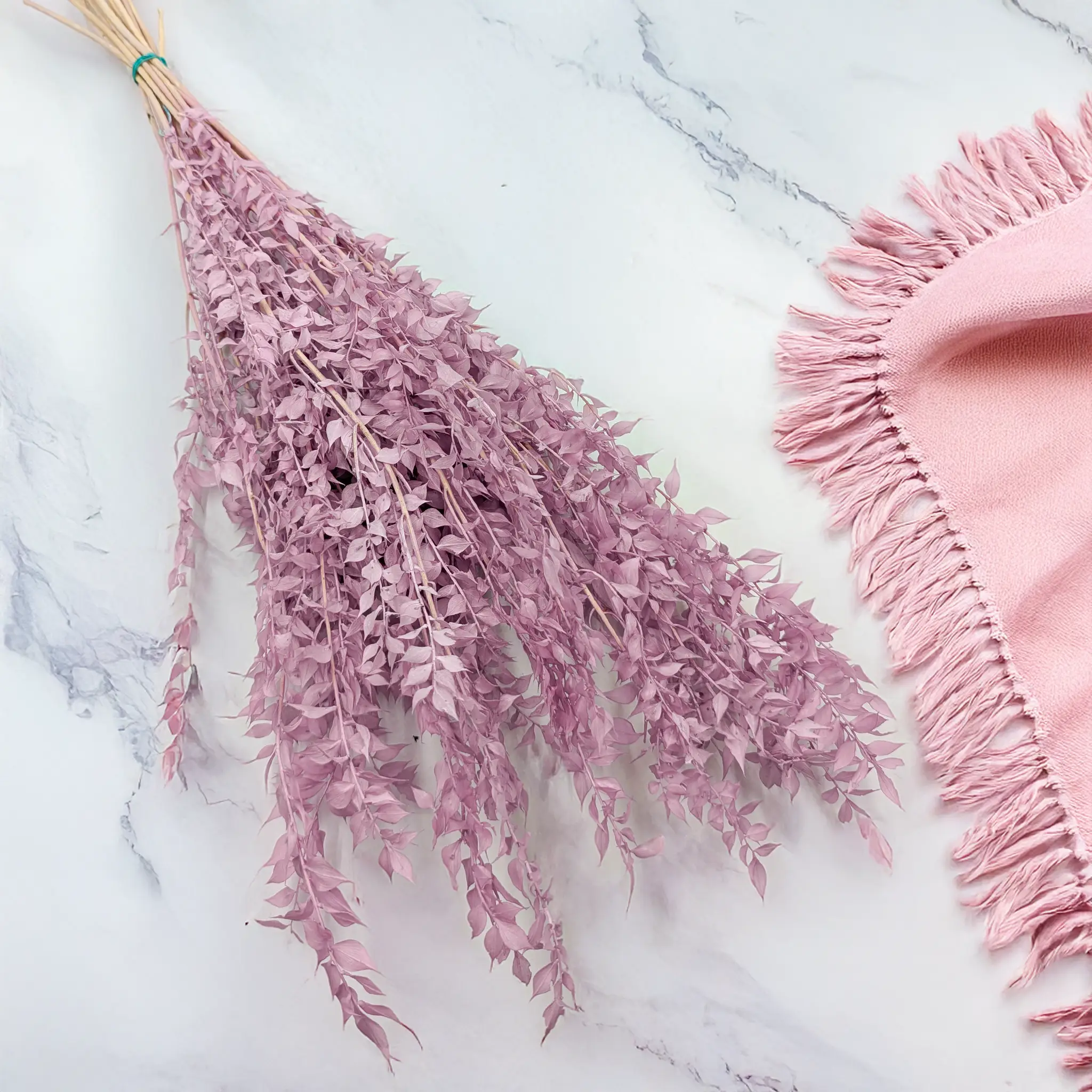 The heather shade symbolizes peace, harmony, and elegance. It blends beautifully with earthy tones, white, pastels, and gold, creating refined and stylish arrangements. Preserved ruscus in this color offers long-lasting and fashionable decorations that retain their natural beauty for months.